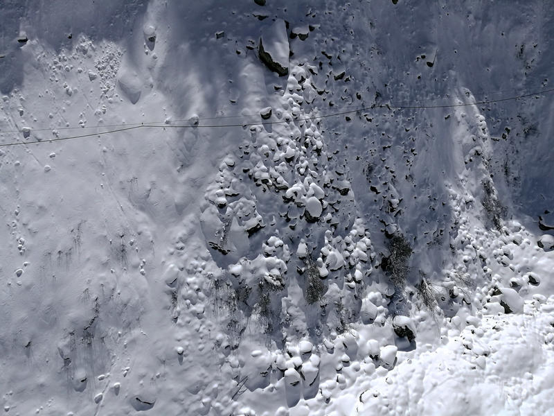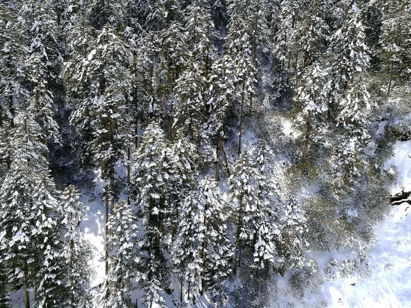 在阳光直射下冰雪消融,林中积雪不时落下。
