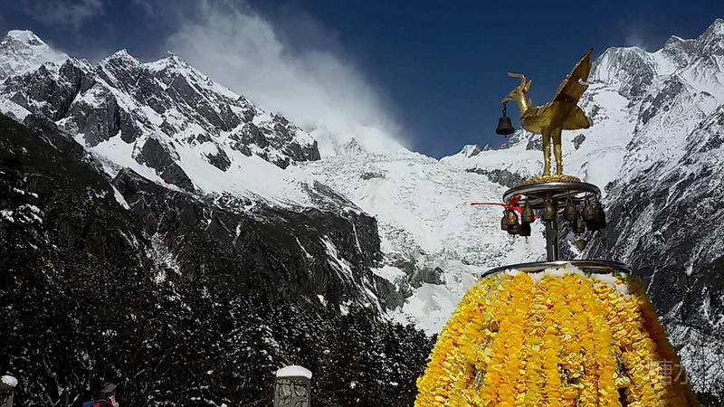 金雀衔铃瞻仰贡嘎山主峰。