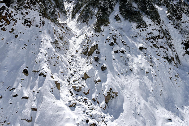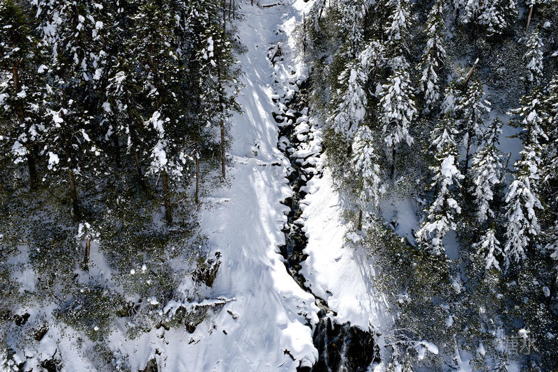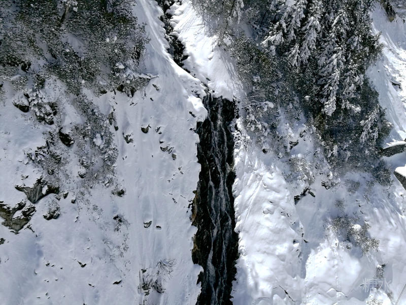 积雪裂隙之中,山泉淙淙不断流。