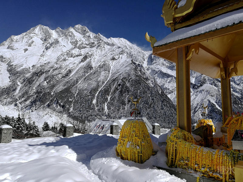 雪山 冰川 云杉林,颇有阿尔卑斯山风韵。