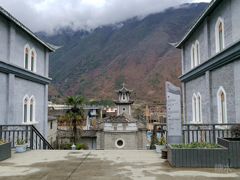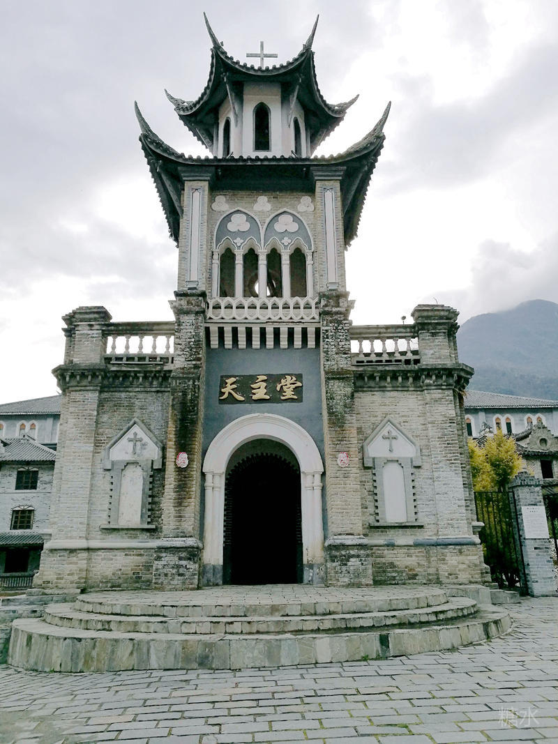磨西天主教堂是一座法国传教士修建的哥特式建筑,礼拜祷告钟声已回响了百年。