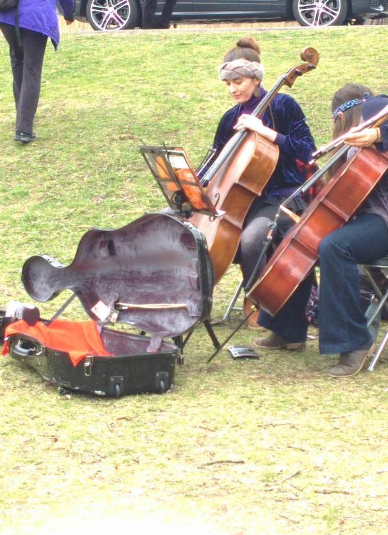 艺人现场演奏音乐,引不少游人损钱表心意!