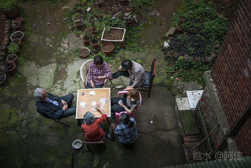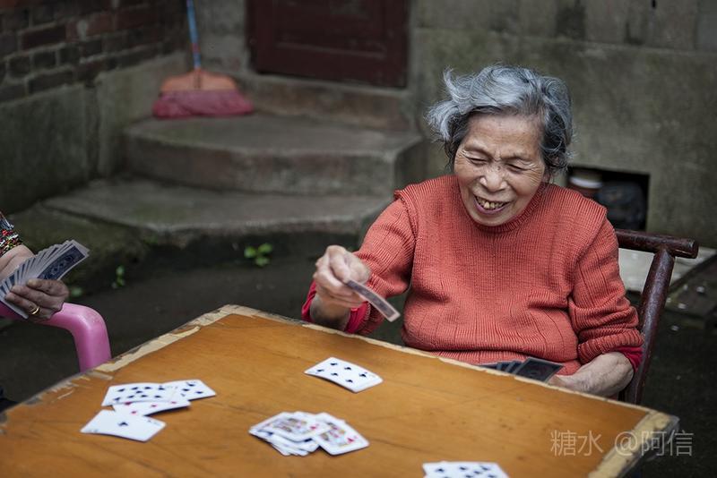 黄娭毑,85岁,十五冶留守处家属工厂退休职工。身体健康,性格开朗。5个女儿。图为与邻居打朴克------双百分升级。