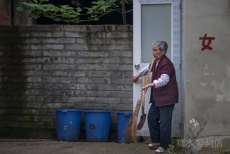 住在这里的老职工大多已八九十岁。各人有着各人的命。他们大多都是十五冶和二十三冶的退休职工和家属。也有不少是长沙锌厂安排过来的。夏娭毑,84岁,长沙锌厂退休,现每月养老金2000多元。1个崽4个女。她一个人住这。热心公益。图为她打扫公厕出来。