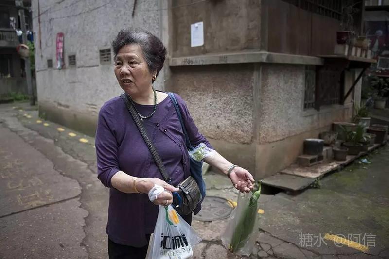 戴玉兰娭毑,82岁,十五冶留守处家属工厂职工,老伴去世20多年,中风,行动不便。2崽1女。一人独居。信佛,身体太差,女儿接去住,儿媳每周都去给她洗澡,但人老了,还是离不开自己这个老窝,吵着闹着要回来。喜欢每天背个袋子柱着棍在外颤颤巍巍的走。因呑咽困难,不能吃米饭,早晚吃麦片,中午吃米粉,长期请一粉店送上门。她说:"我活着是受罪。"