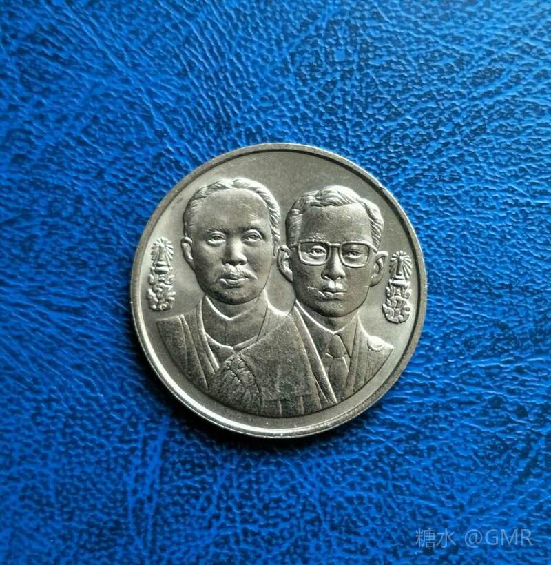 1994年发行的面值5铢的泰国拉玛九世国王普密蓬(前)和泰国拉玛八世国王阿南塔铜镍纪念币