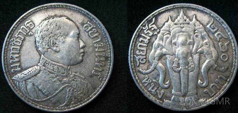 1915年发行的银币,正面为拉玛六世头像,背面为三头象