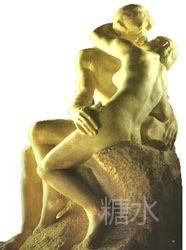 《吻》取材于但丁的《神曲》里所描写的弗朗切斯卡与保罗这一对情侣的爱情悲剧,罗丹取用这一题材以更加坦荡的形式,塑造了两个不顾一切世俗诽谤的情侣,在幽会中热烈接吻的瞬间。 这件雕塑把双人座像的下半部纳入大理石整体之中,避免了脚的繁琐而加强了坐像的整体感。以极为古典的写实手法雕刻而成。他们起伏,细腻,优雅的肌体和姿态,引起了极为生动的光影效果。仿佛其内在的青春热情与生命,正凭借这些光影在闪烁。当我们望着这生动眩目的杰作时,每一个人都不得不为之激动,即生命之本源的感动。爱情,本就是世间万古不朽的永恒主题。罗丹选取了裸体男女的接吻,这纯洁肉体的最初接触,因而是最动人心弦的。这对受欲望之火燃烧的恋人被放在“地狱之门”中,表达了作者那永无答案的痛苦而矛盾的思索:人的罪恶由不可克服的欲望而来,而欲望是由于人类对光明与欢乐的追求而来,因此人类的欲望就是罪恶的深渊,人类的欢乐就是导向罪恶的途径,而人类的痛苦就是注定不可抗拒的,永无完结的。