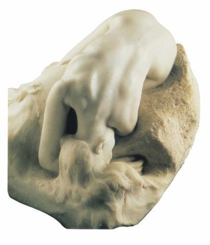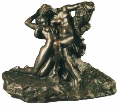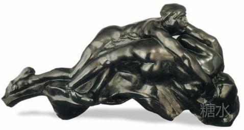 保罗·马拉泰斯塔和里米尼的弗兰切斯卡,是但丁在《神曲·地狱篇》中描写的一对情侣,或许是爱得太执着,他们因偷情而丧生并被判入地狱。罗丹曾用多种不同的男女双像造型来体现他们的悲惨恋情。在这件作品中男女人体是向前趋势的横倒造型,女人侧卧,展现出她丰腴的背部,微微分开的双腿,头部向侧后伸拉,无不突出她半推半就地抵触,透出她快乐的心理状况,她是诱惑迷人的,并带有撩人的调皮。渴望激情的男人满心荡漾着欲罢不能的情绪,他热烈地扑在女人身上,企图拥起迷人的女人,从他不知所措的眼神和不由自主张开的嘴唇上可以看出他可望不可及的焦虑。罗丹对爱情的理解充分而周密,把恋情和焦灼刻画在人物身体的每一部分。不论是悲情,还是爱的错误,他们在罗丹的雕琢下,在这个瞬间,爱得那么坦然,幸福无边。