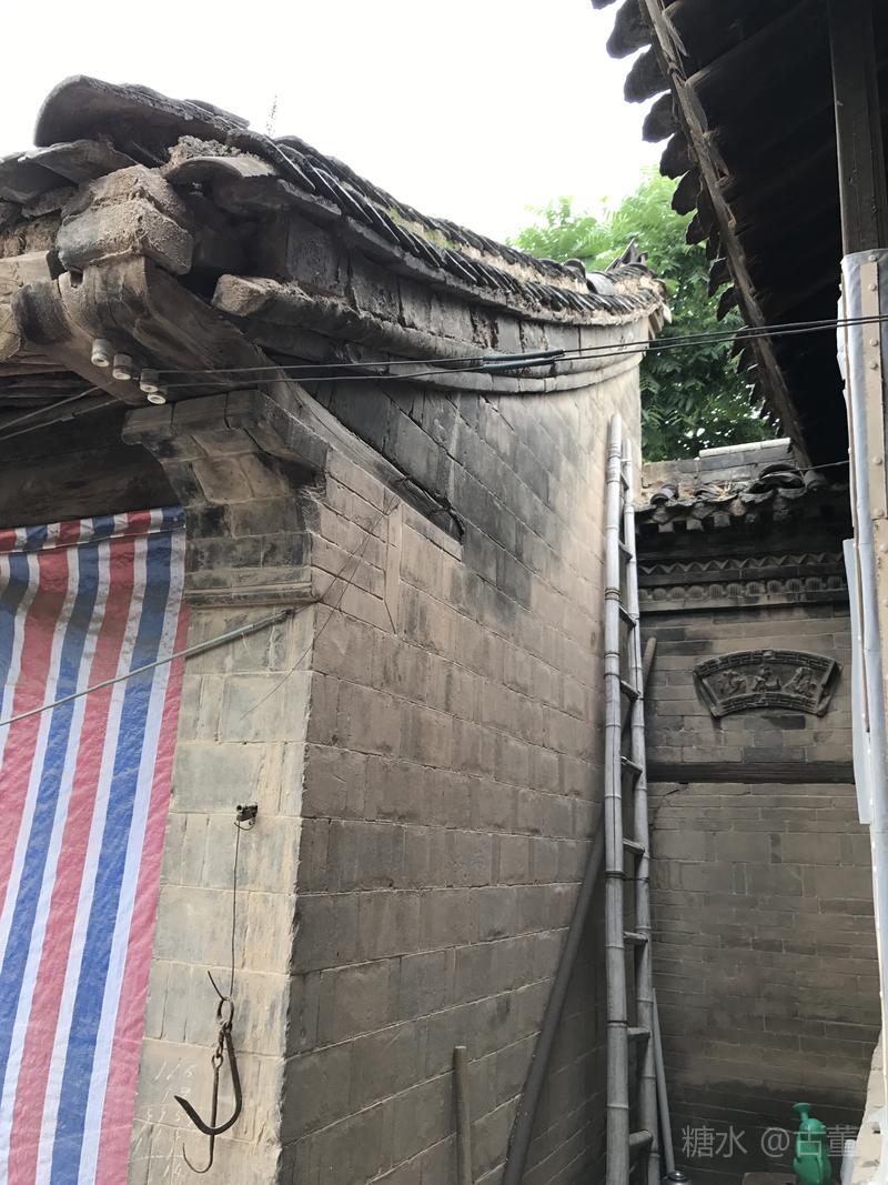 灰砖,灰瓦,屋檐,墙脊经过修饰的门楼,院里的正房没有修复。