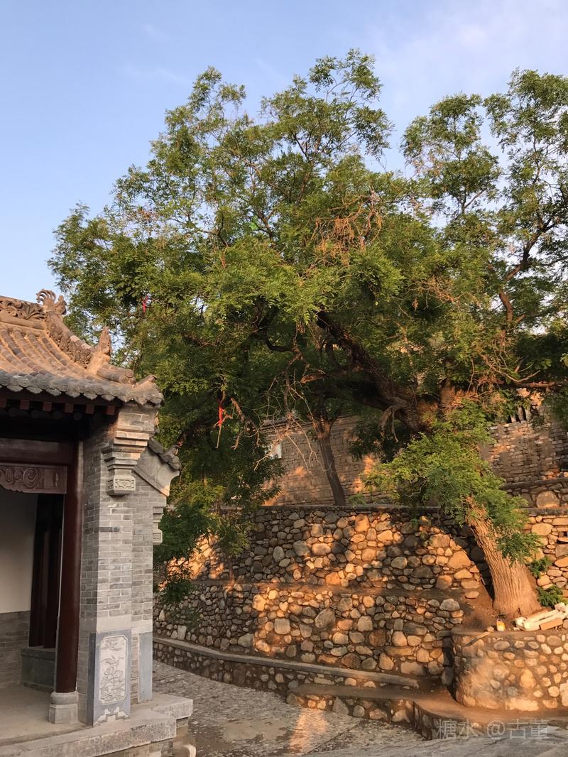 泥灶炊烟狭径绿,歪脖古槐今已希; 老树横跨当街路,御亲故事有传今。