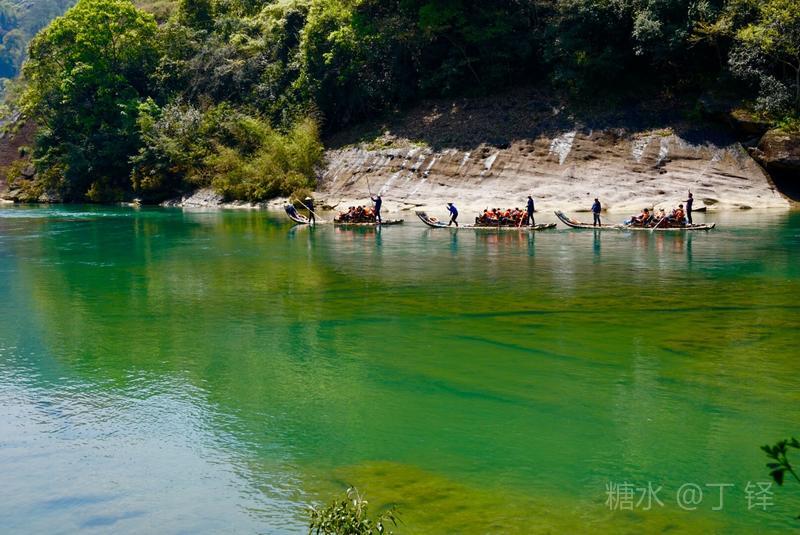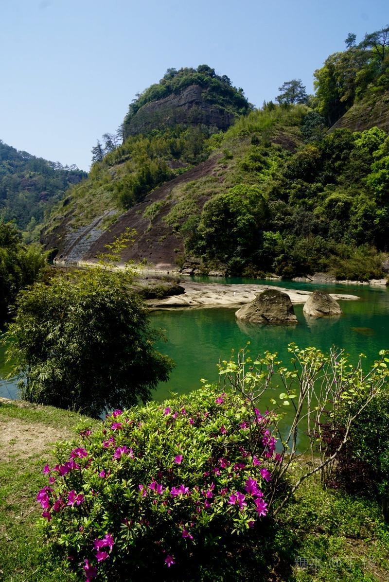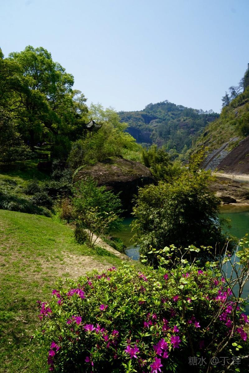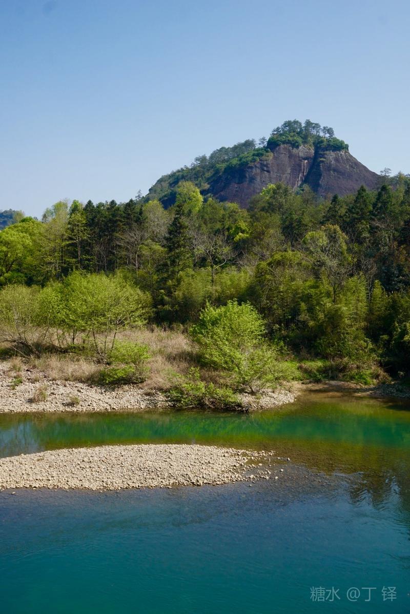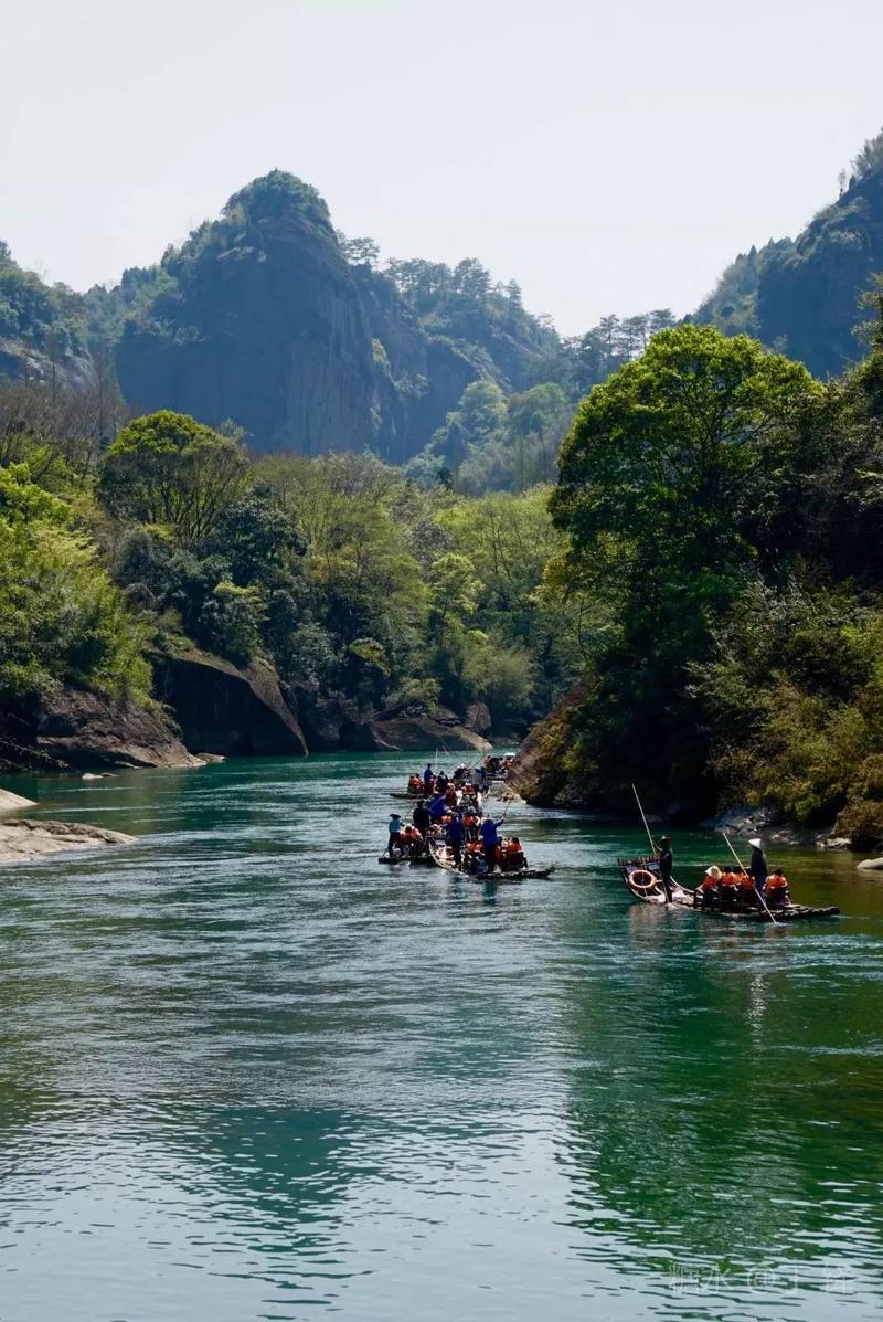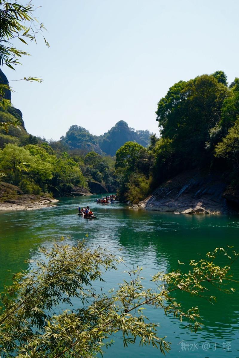 天游峰的景色确实优美,除了攀峰可一览武夷山的秀丽山水外,山下的景观也很有特色。一是可欣赏崖壁上的历代书法;二是可近距离的体验“壁立万仞”豪气冲天的气势;三是在九曲溪边,看竹筏漂流,款款而来的神韵。
