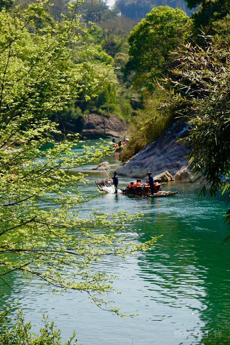 款款竹筏飘然而来,好一幅美丽的风景。
