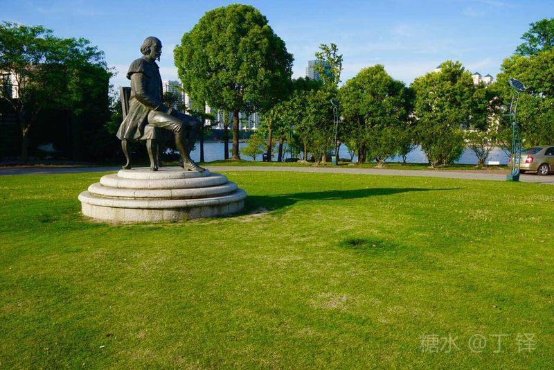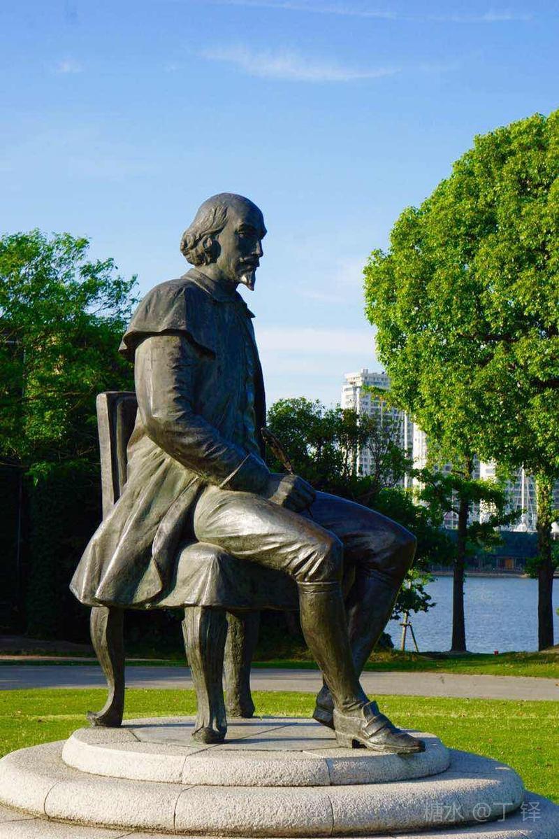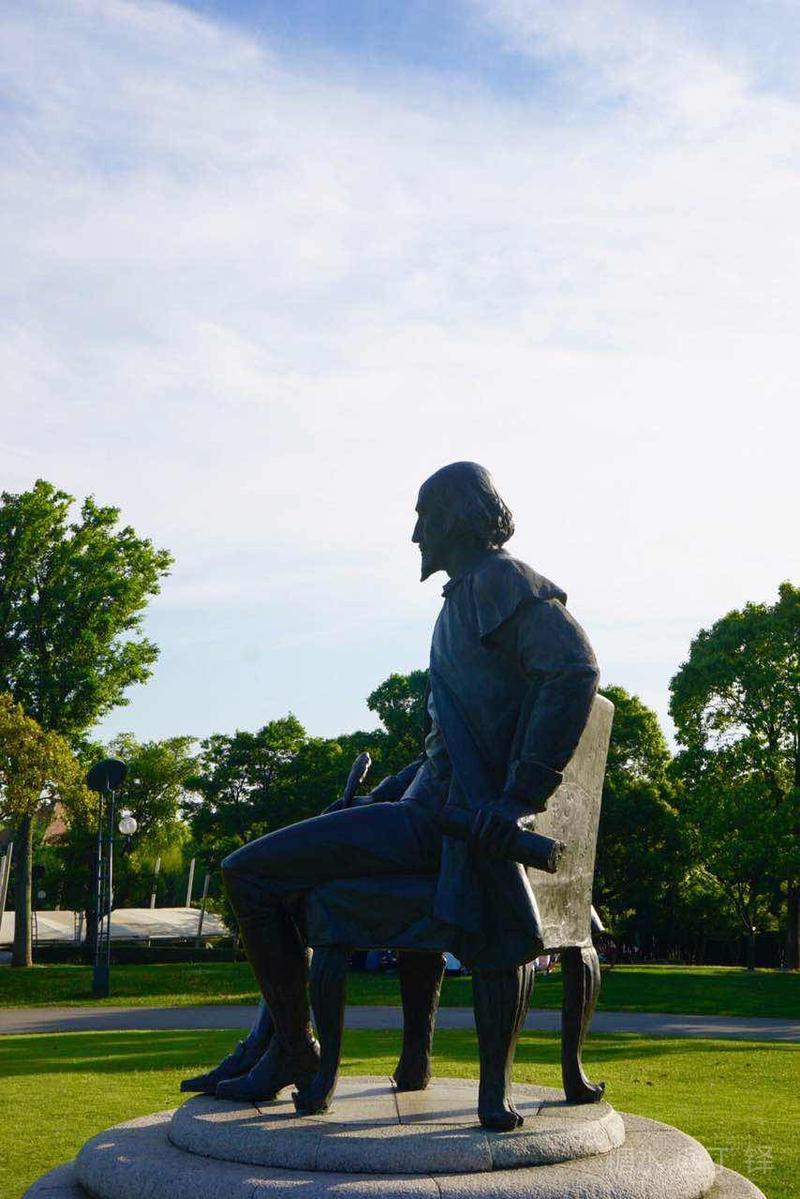 在音乐广场上的人物座像是莎士比亚。 威廉·莎士比亚,文学家,戏剧家和诗人,他在西方文学史上占有特殊的地位,被喻为“人类文学奥林匹克山上的宙斯”,我们这一代人谁没有读过几部他的作品?