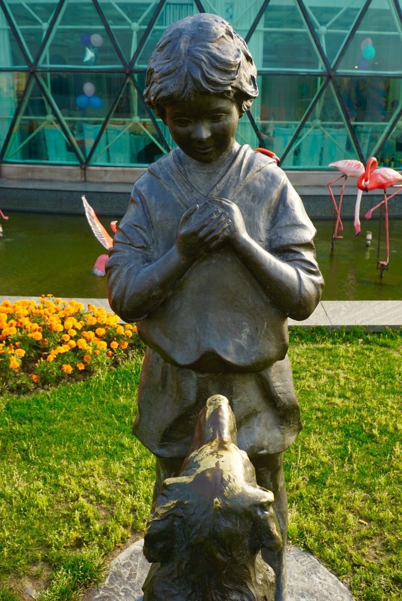 小镇的雕塑大部分都是铜塑,也有少量其他材质的。 这是一位法国雕塑家的作品《母亲》。