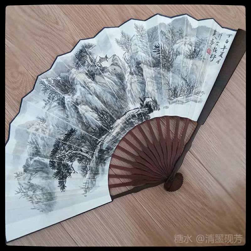 折扇 在古人心里,有这么一个爱称----怀袖雅物 尺寸之长,拂襟之轻 清风徐来,余韵悠长 折扇在方寸之间,把诗书画印集于一身,实则是文房必备之雅物。一把折扇从选材、制作,要进过三十多道工序,纯手工打造。再配以书画、金石、锦盒、扇坠……少则月余,长则以年计算。文人对其钟爱,怕也是其中工匠的匠心独运使然。 扇骨本也风雅,黑檀、白竹、湘妃、蛇纹木……自身便是收藏佳品,于宣纸绢丝为伍更是多了万种风情。若再遇上文人墨客的逸品书画,那真是美轮美奂,不可方物。 我喜欢折扇,偏爱竹制扇骨,尤以湘妃竹为最。我是不去品论湘妃竹的等级的,上乘红湘妃也望尘莫及。对我而言,有板正的竹骨,便是好扇,便用棉质包好,放在茶篮与茶一起存放,轻打折扇,竹香、茶香清风徐来,神清气爽。美哉悠哉。