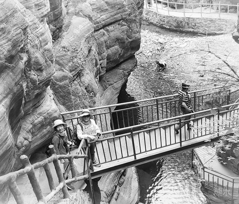 国家4A森林公园,万仙山,绝壁长廊,又称郭亮洞,被誉为世界最奇特的18条公路之1,号称太行隧道之父。 岩壁为质地坚硬的红色砂岩,倾斜度极高,陡峭高耸,连绵不绝。