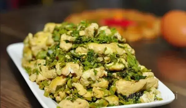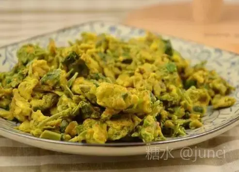 【香 椿 炒 鸡 蛋】  妈妈说她们小时候家里的条件有限,要是吃上一次香椿炒鸡蛋,能回味好几天了,这香椿要是买回家,因为香椿的味儿很窜,大老远都能闻得见。