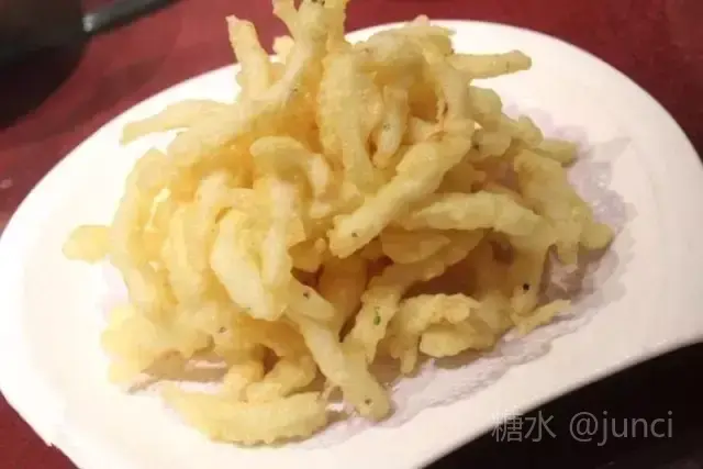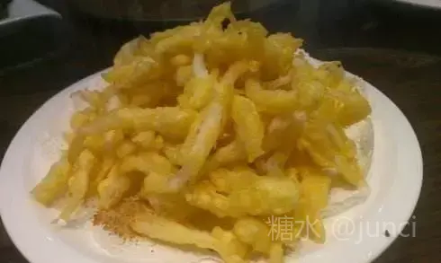 【炸 小 银 鱼】  成熟的银鱼也就三四寸长,鱼嘴是尖的,鱼眼是金色的,鱼体清亮透明如银,闻起来还有股黄瓜的清香味儿。
