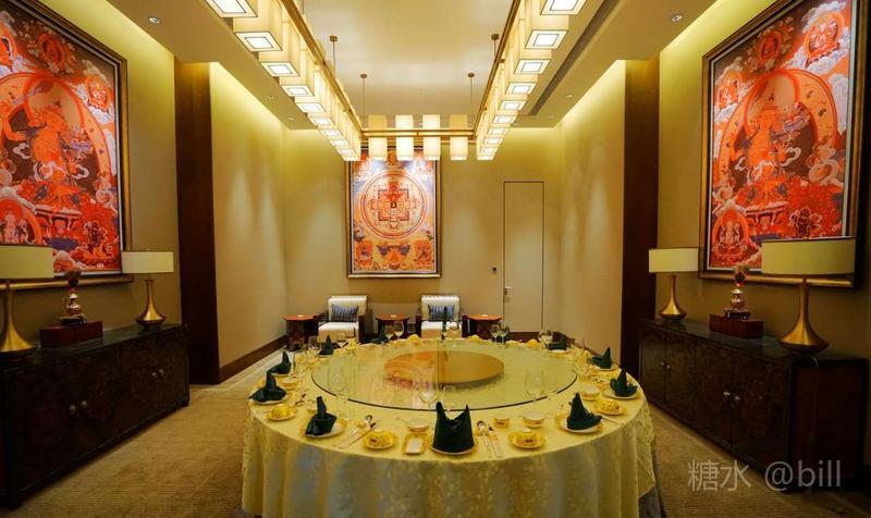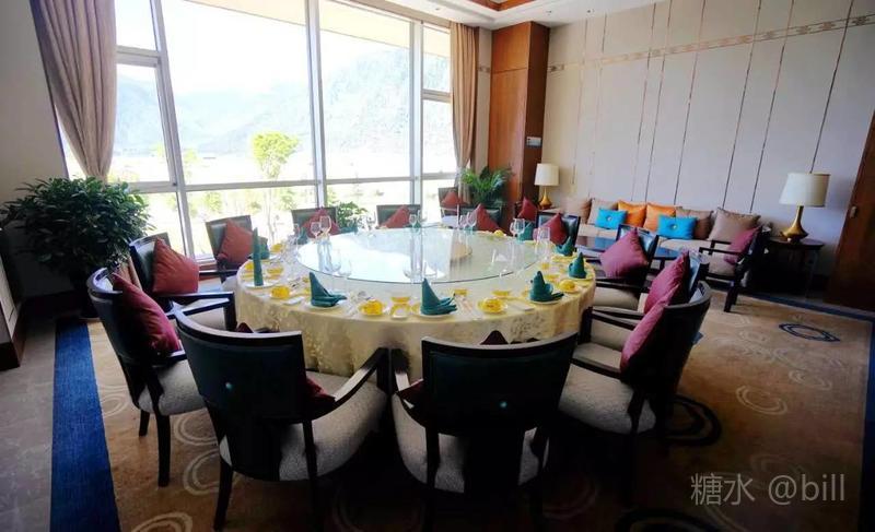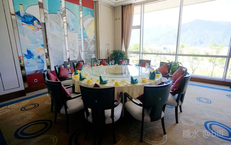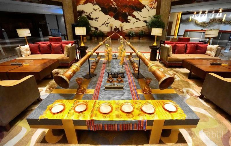 位于酒店一、二楼有以高贵典雅新后藏文化精华元素设计的原生态特色中餐厅、全日制餐厅、精致风味厅、行政酒廊等;可同时容纳550人用餐;会议及宴会设施先进齐备,拥有400M²的多功能厅及大小会议室五间,并配备高清晰多媒体投影等智能设备,还设有丰富康乐项目,如健身房,茶舍、棋牌及SPA康体中心等,可满足各类型商务洽谈会议提供便捷服务;汲取天然藏元素,以藏式传统家具融合现代简朗设计布局,彰显尊贵品质人文魅力,为旅途劳累的阁下提供轻松愉悦的康体休闲环境。