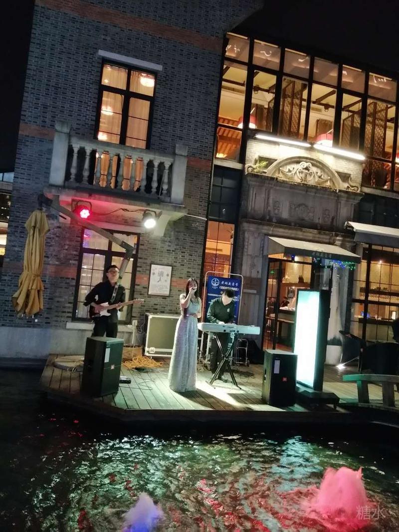 歌手在露天酒吧边献唱。昨天爵士音乐节开幕式节目较多,今天就一个歌手在唱。