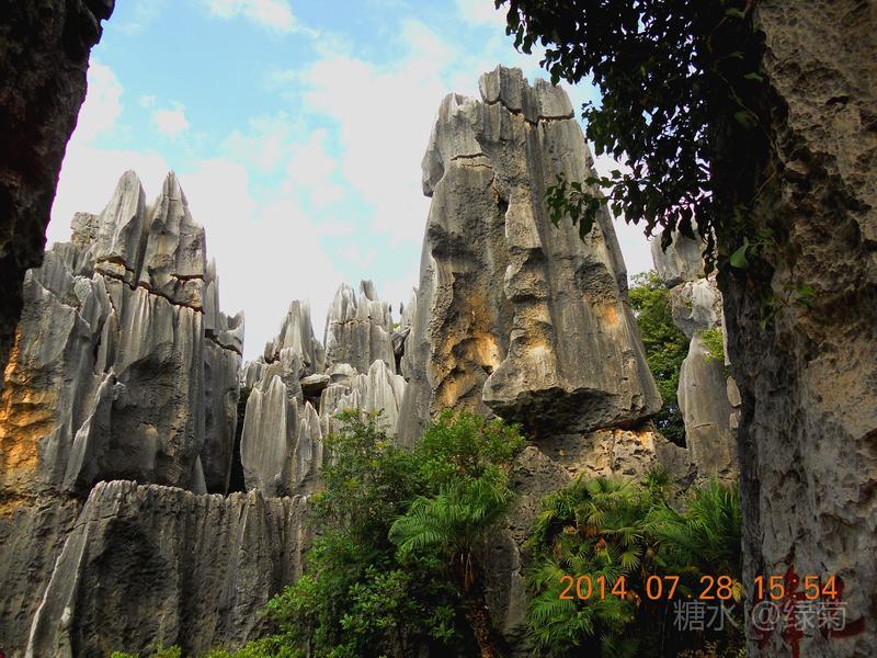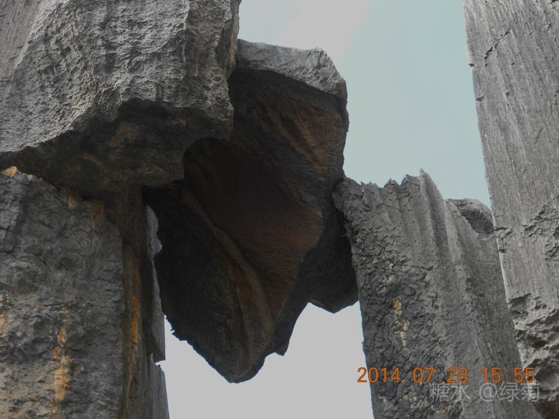 在石林中穿行,走累了照一张相片歇歇脚