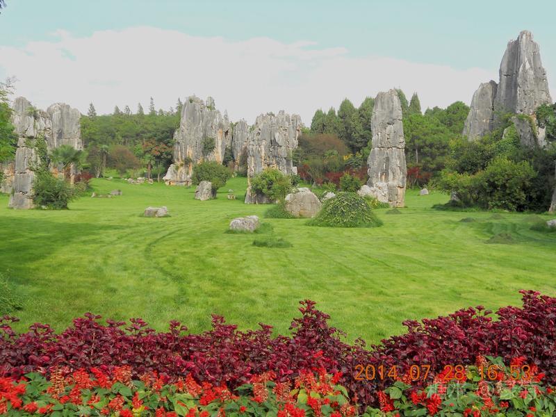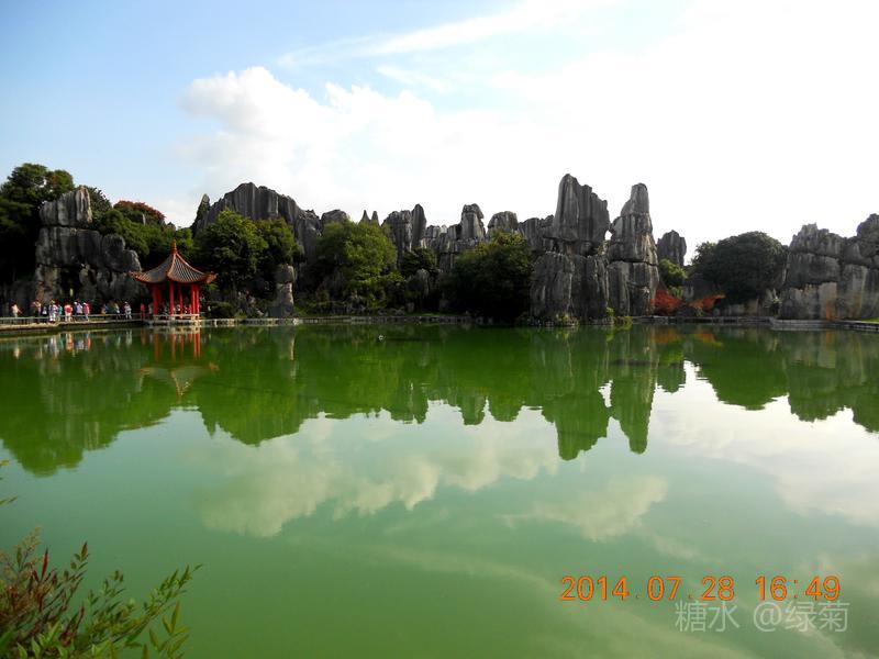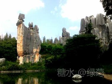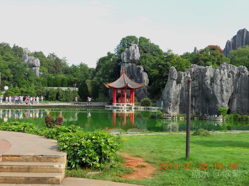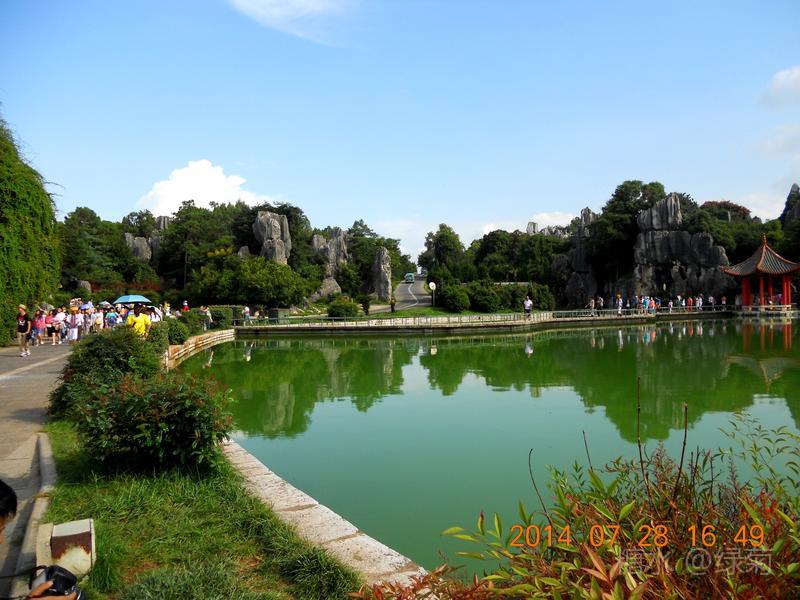 小石林景区与大石林景区比较,石头与草地、绿水结合有别样的美,一眼望去心情舒畅,炎热的夏天也似乎降温不少。