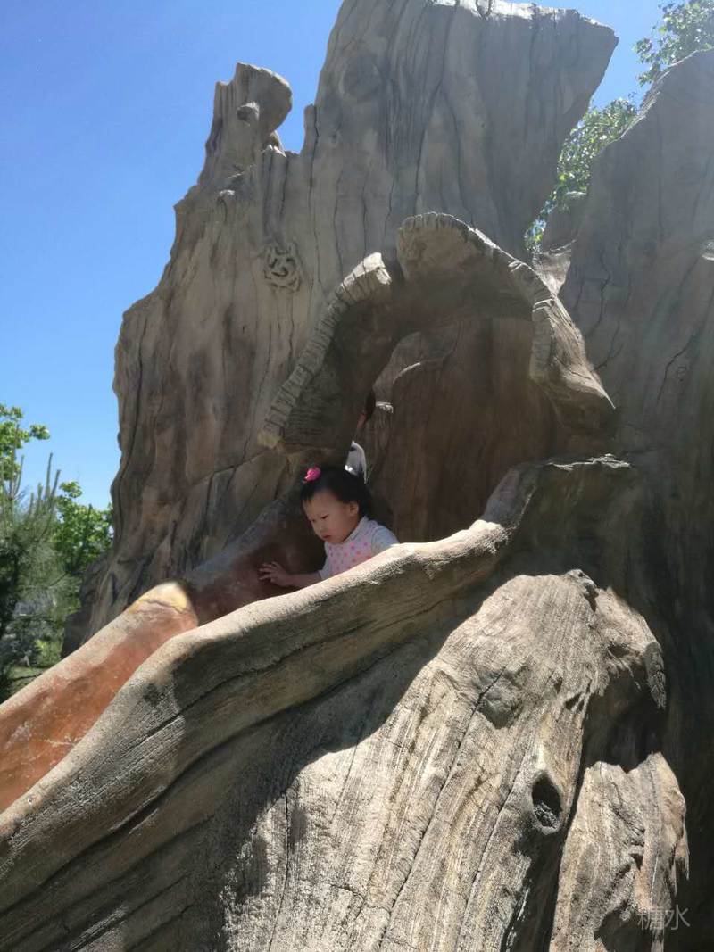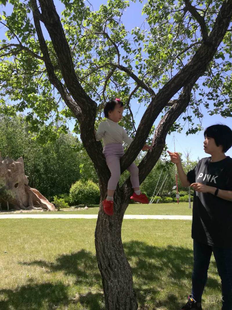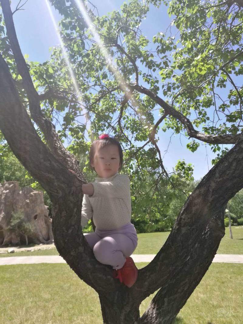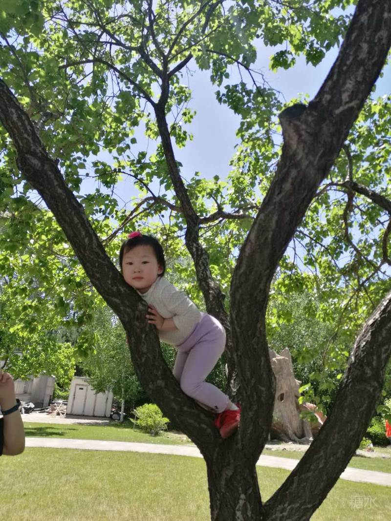 参观结束,洛洛还在博物馆的院子里面滑滑梯,居然还爬到树上面,好开心哦!