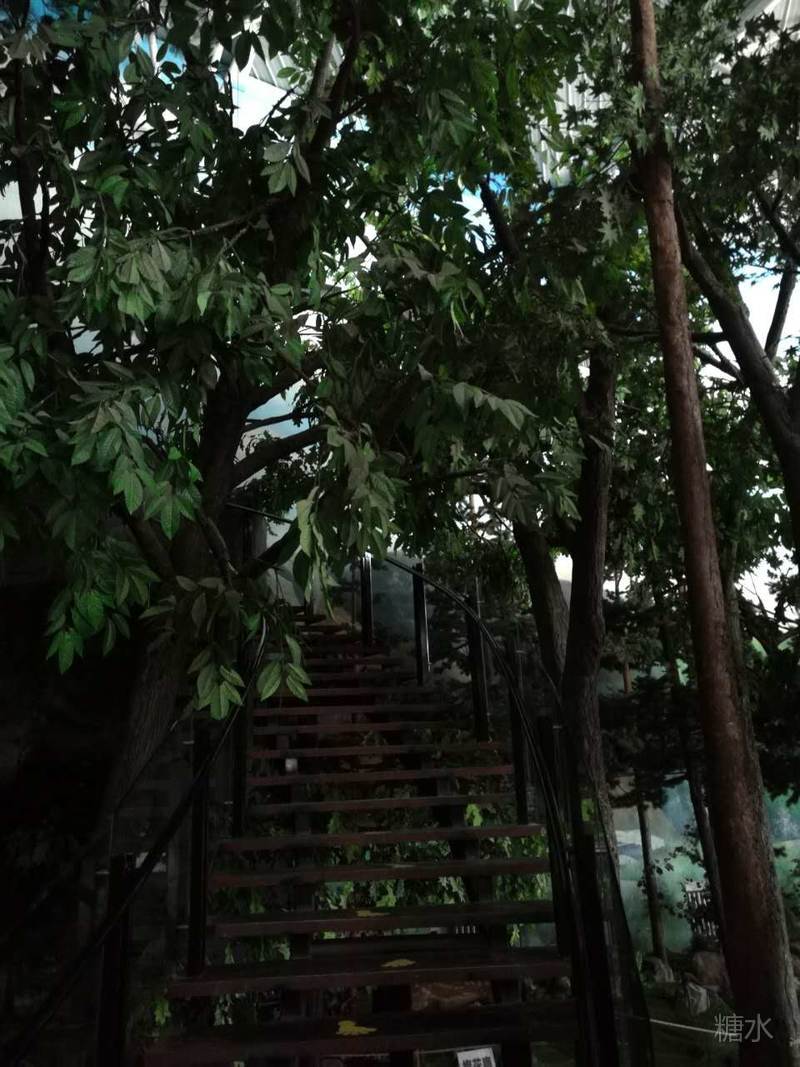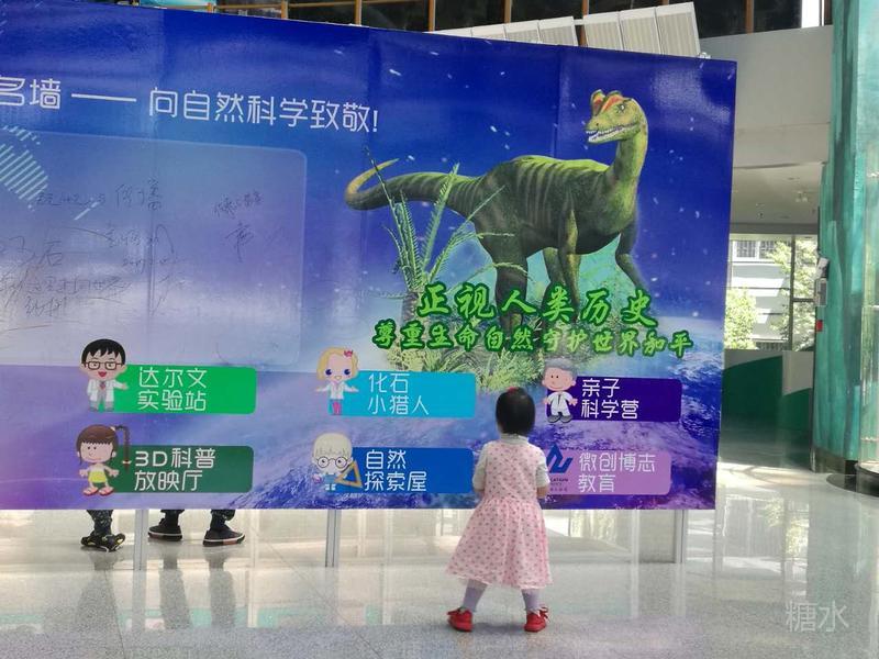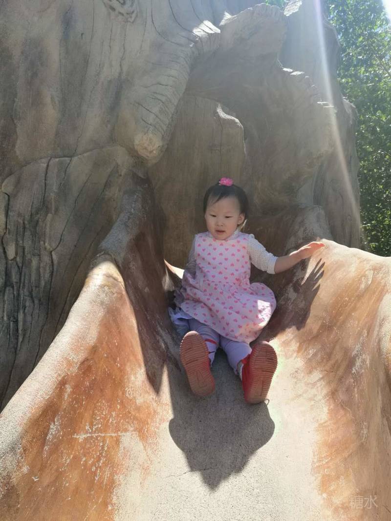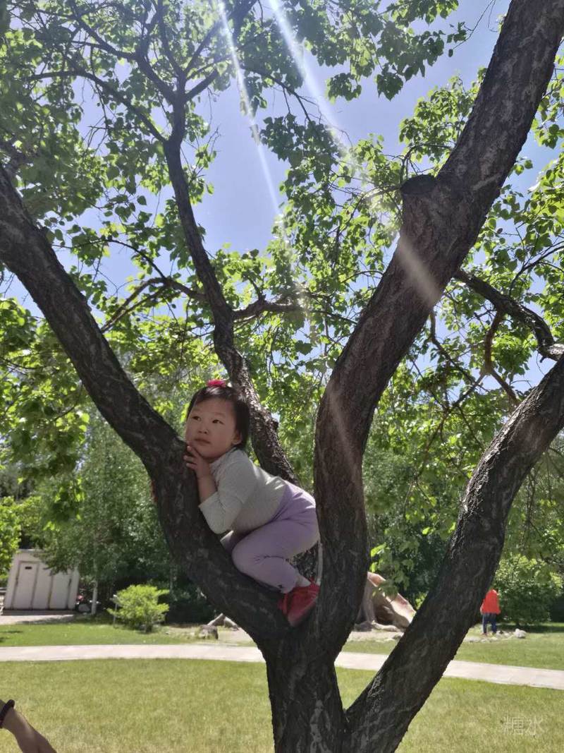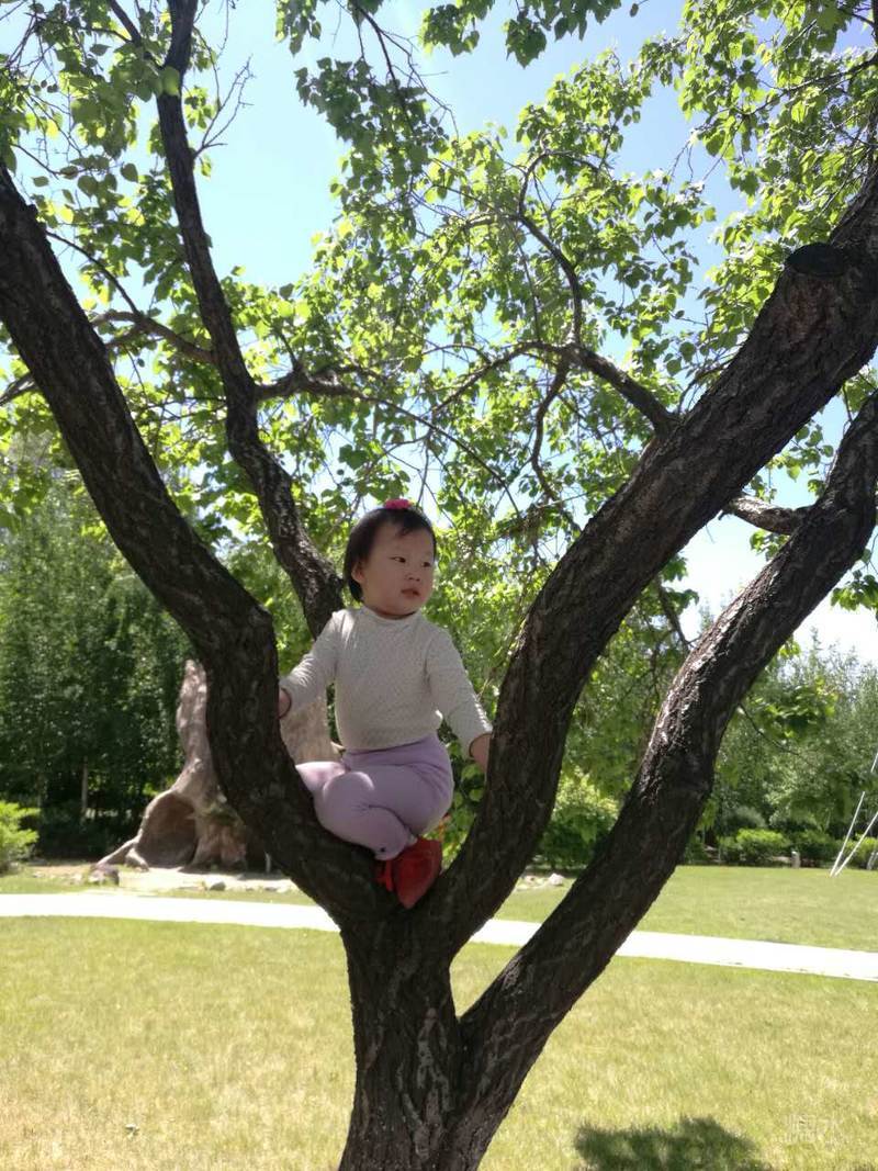 参观结束,洛洛还在博物馆的院子里面滑滑梯,居然还爬到树上面,好开心哦!