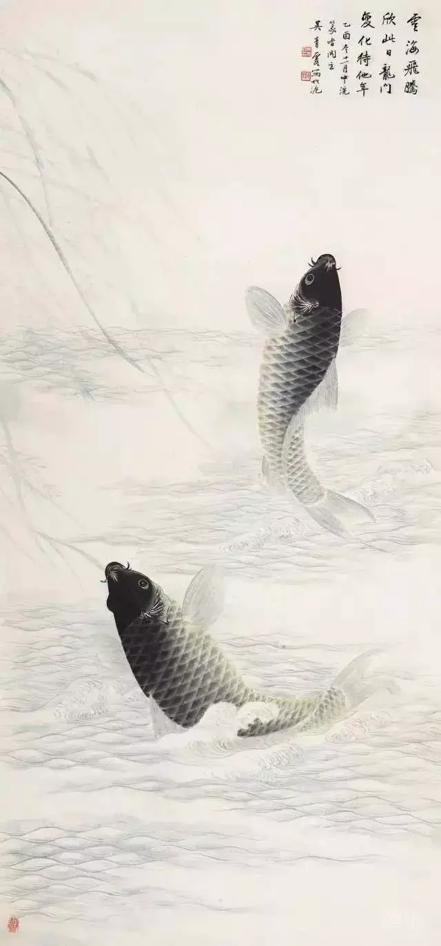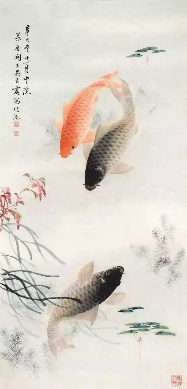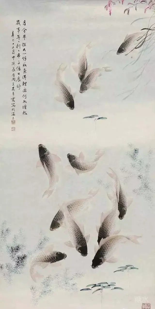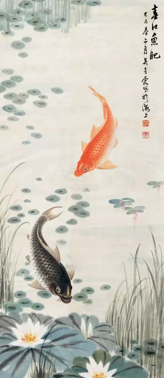 吴青霞所绘众多作品中,尤以侍女、芦雁、鲤鱼最为精彩,亦最具代表性。她所画鲤鱼尤为出色,不同凡响,鲜活异常;生机勃勃,情趣无限。她被人称为“鲤鱼吴”,在书画界有着极高的声誉。