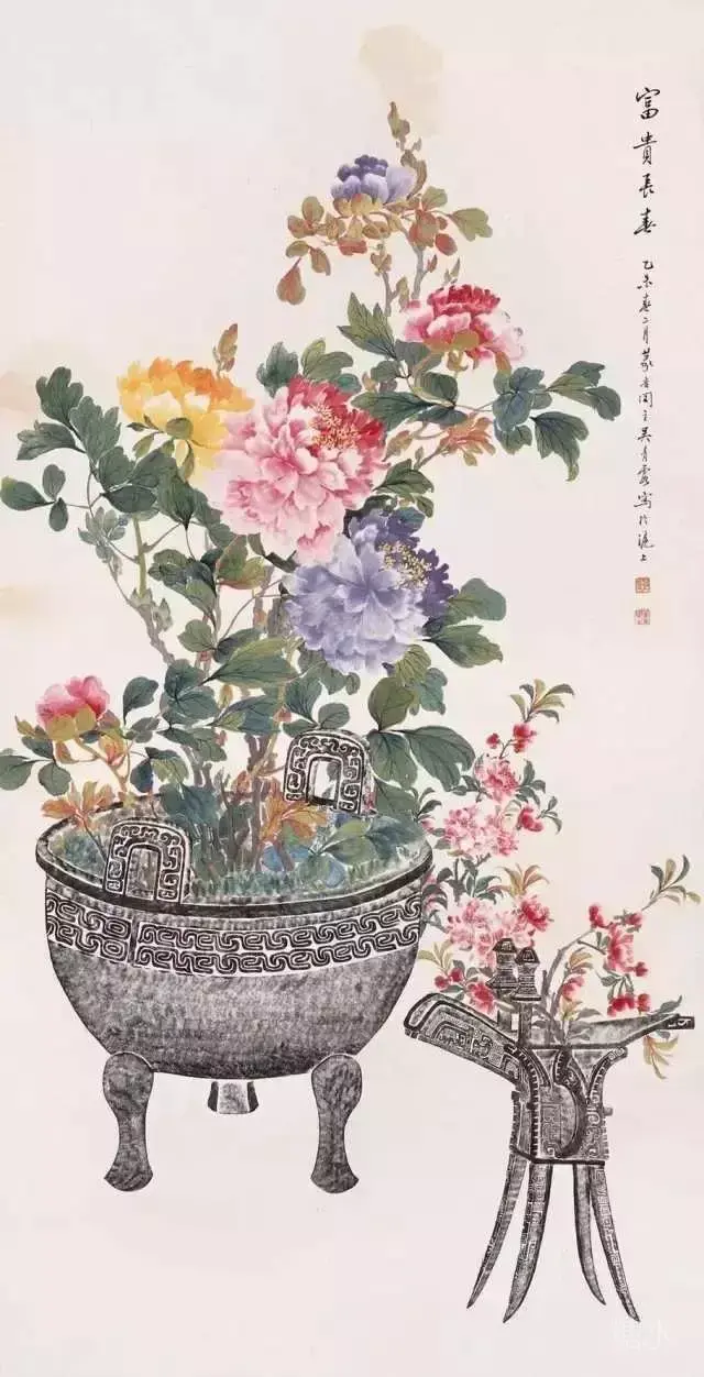 她的作品,笔墨酣畅淋漓,古法用笔,线条挺拔,个人功力修为极高。设色明快,兼工代写。令绘画神采跃然于纸上。