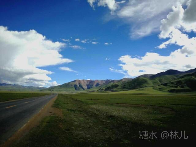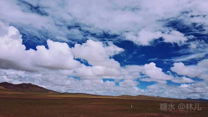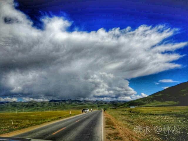 优美的白云悄然飘过;戈壁广阔,公路铺到了世界屋脊,可以站在山顶摸着天上。