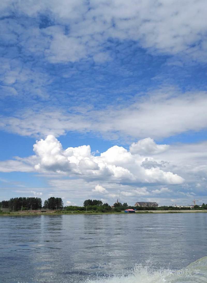 烟波浩淼的黑龙江从村边流过,我们坐游艇在江上观赏着北极村的全景,更增添了北国的情趣。