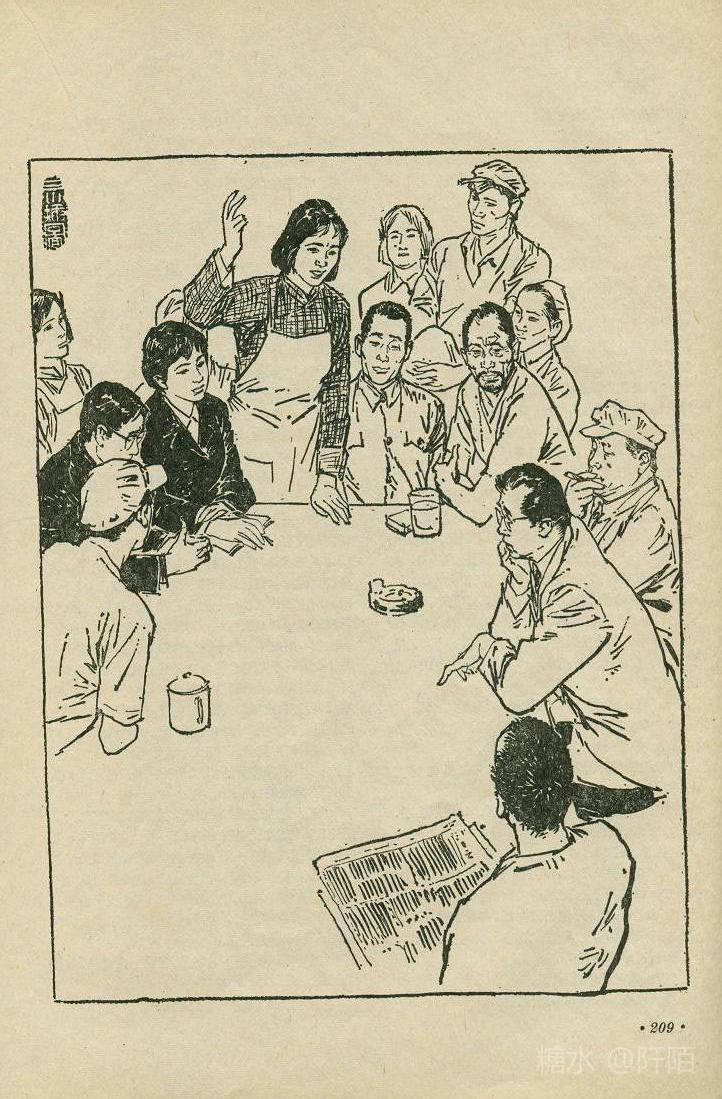 以下,华三川在文革前为《上海的早晨》创作的八幅黑白插图。
