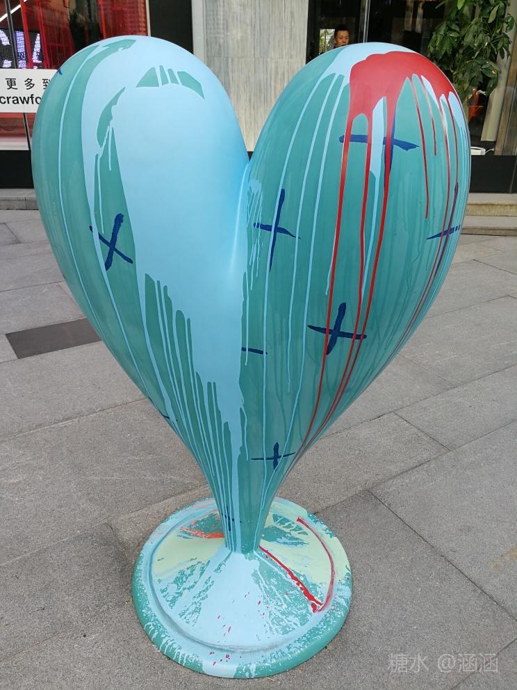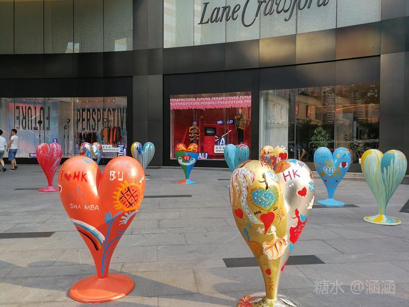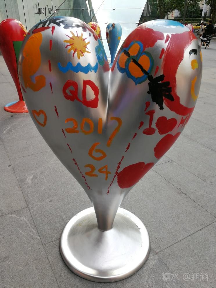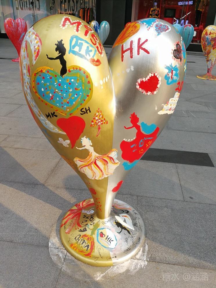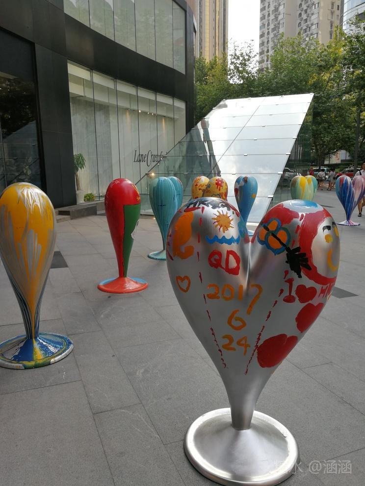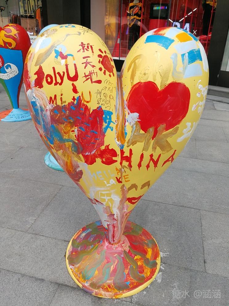 爱心雕塑群于6月24日在上海新天地南里广场展示,人们可以共同参与爱心雕塑艺术创作活动,并写下祝福话语。