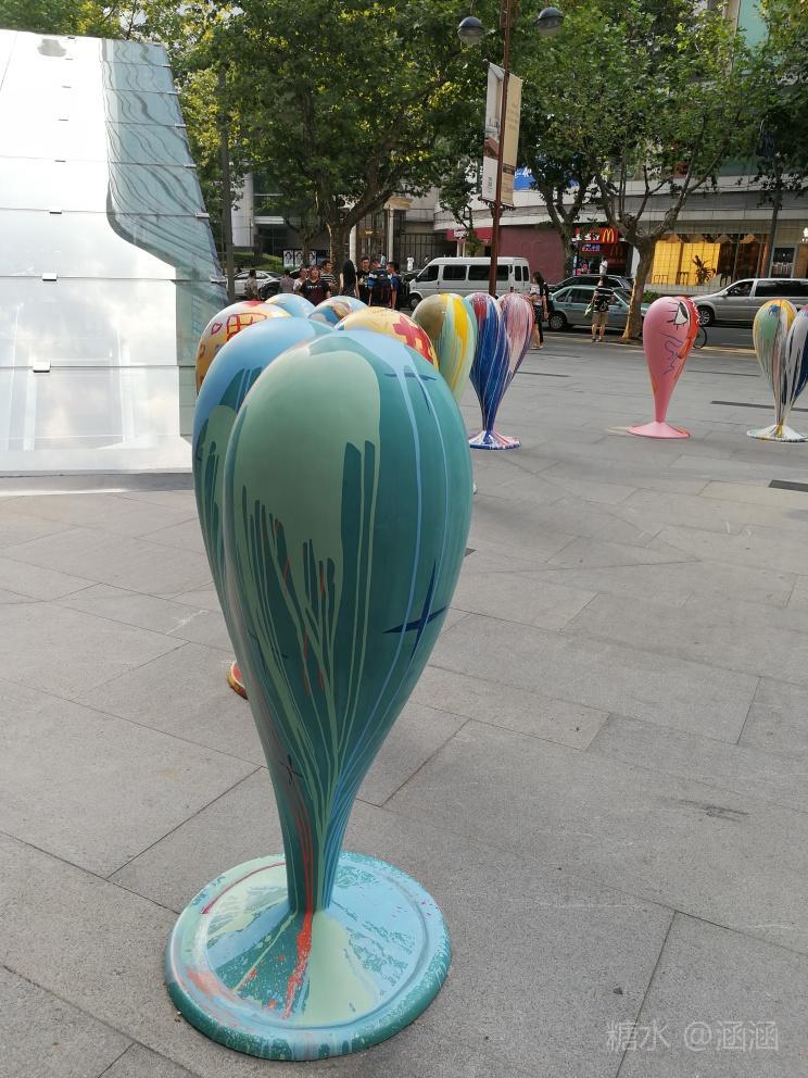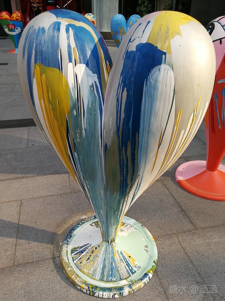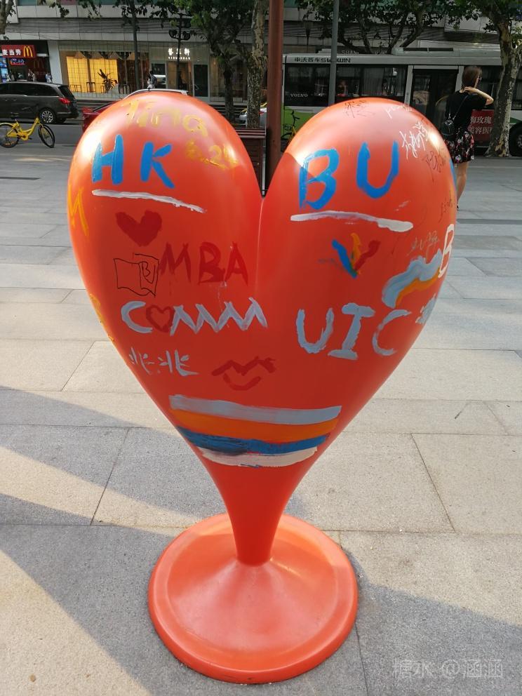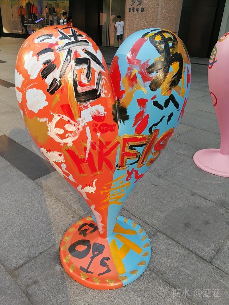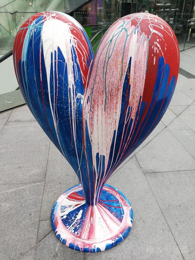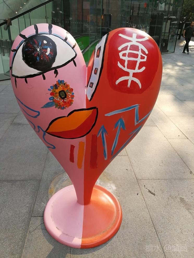 爱心雕塑群于6月24日在上海新天地南里广场展示,人们可以共同参与爱心雕塑艺术创作活动,并写下祝福话语。