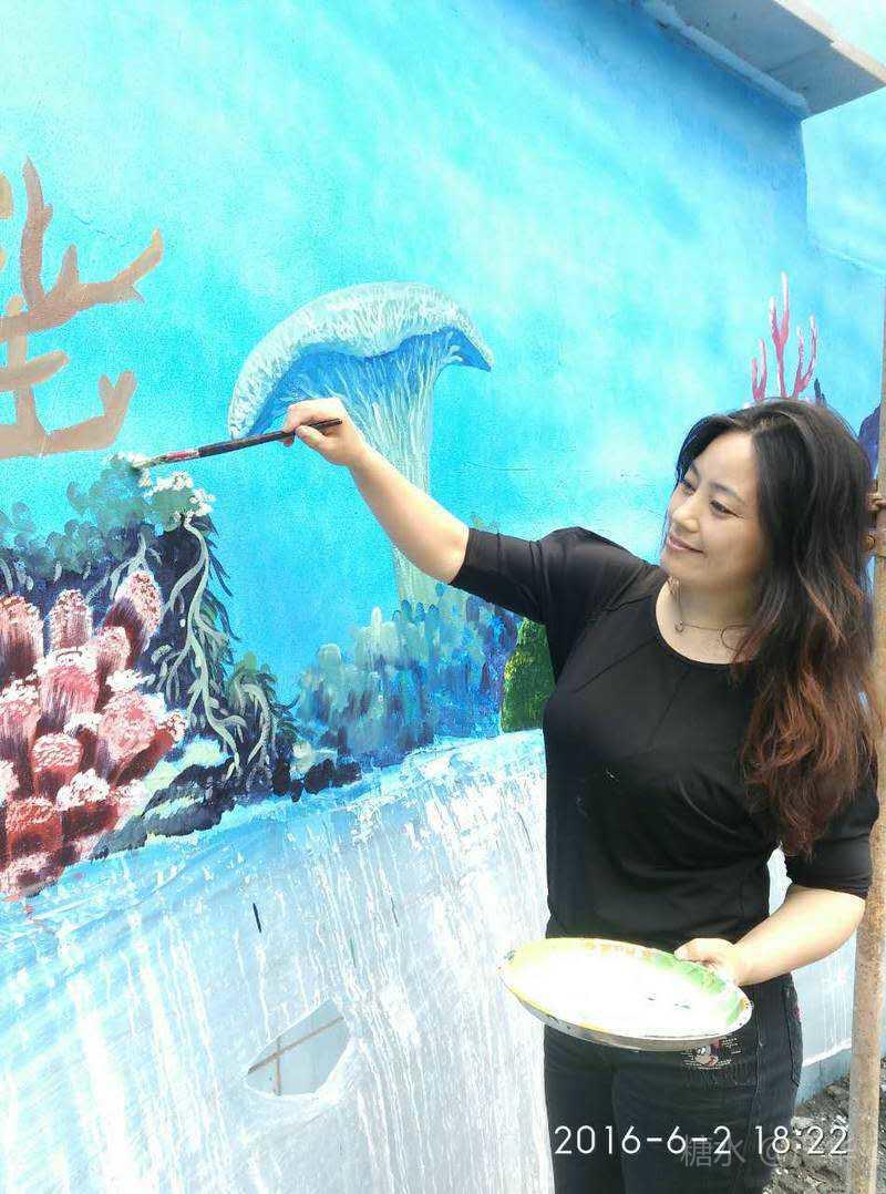 七绝 题会诗沟艺术墙绘(新韵) 文/ 严华 锦绣山川七彩调, 湖光闪烁涌波涛。 点睛壁上鱼儿跃, 妙笔柔情醉里描。
