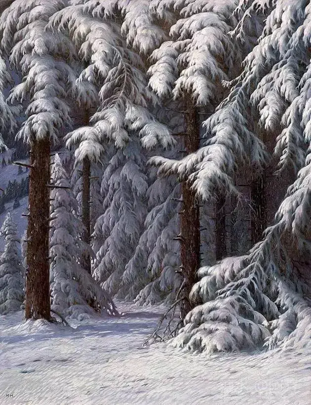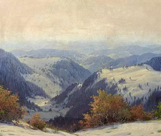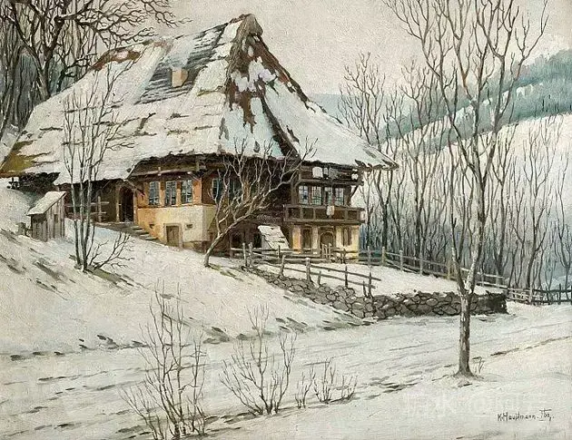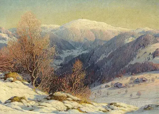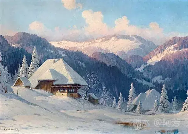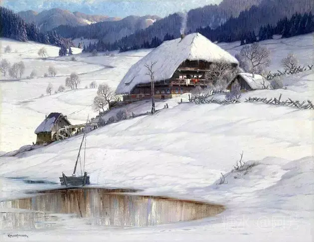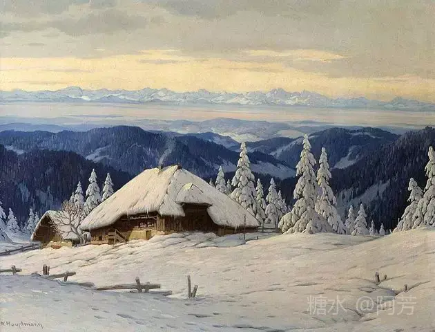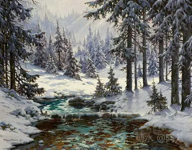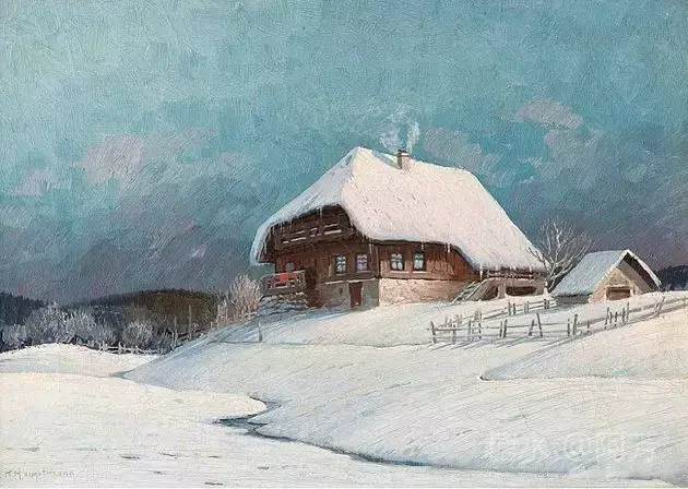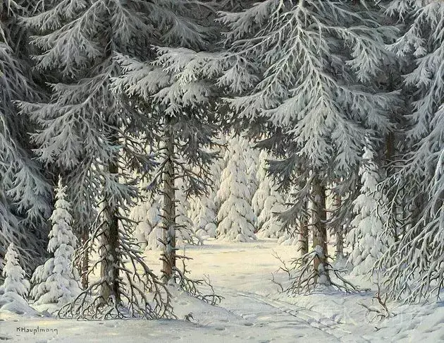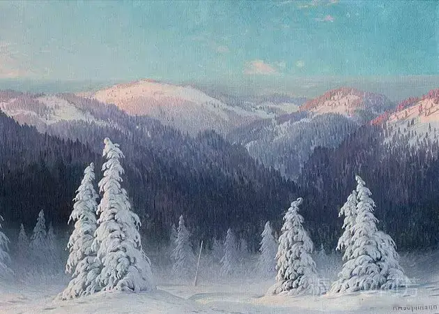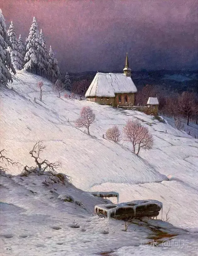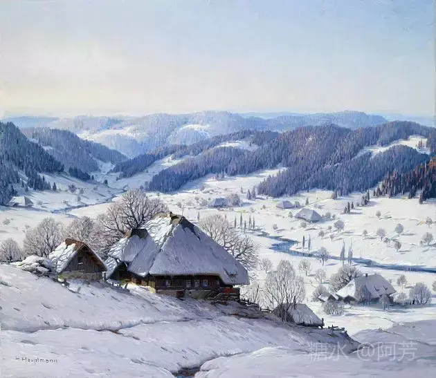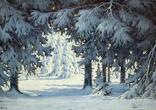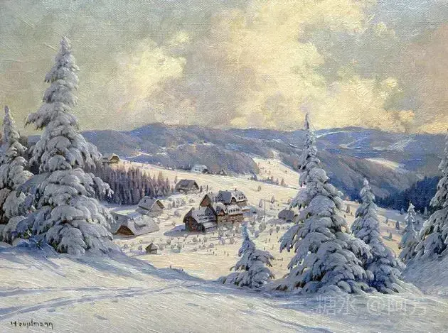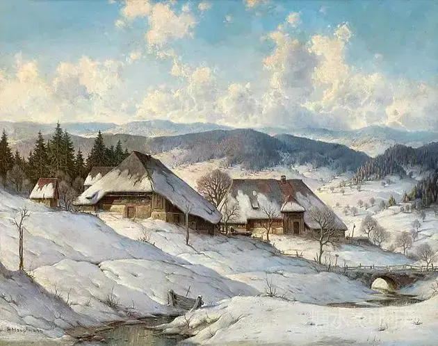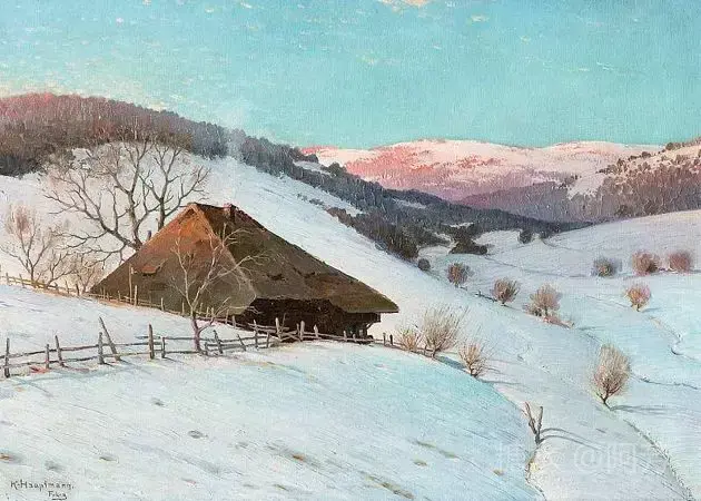 【雪景油画】 雪景油画是德国画家 Karl Hauptmann所画, 美丽无比,令人陶醉!