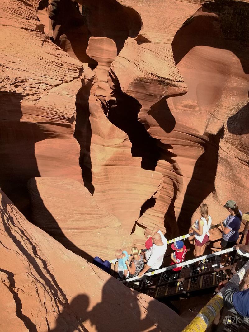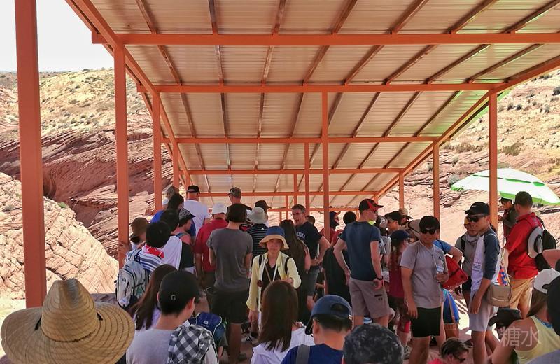 虽然不是旅游旺季,但排队人也不少。为控制进洞人数,必须由印第安导游分批带入,这也是为了游客的人身安全。如果附近突然降雨,峡谷内瞬间就会变成急流奔腾的地狱。1997年,由于5英里外的一场小雨,洪水吞噬了11名进入下羚羊峡谷的欧洲游客。