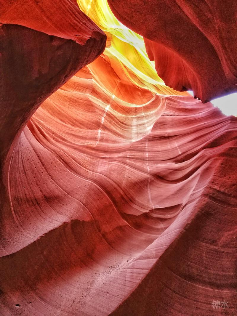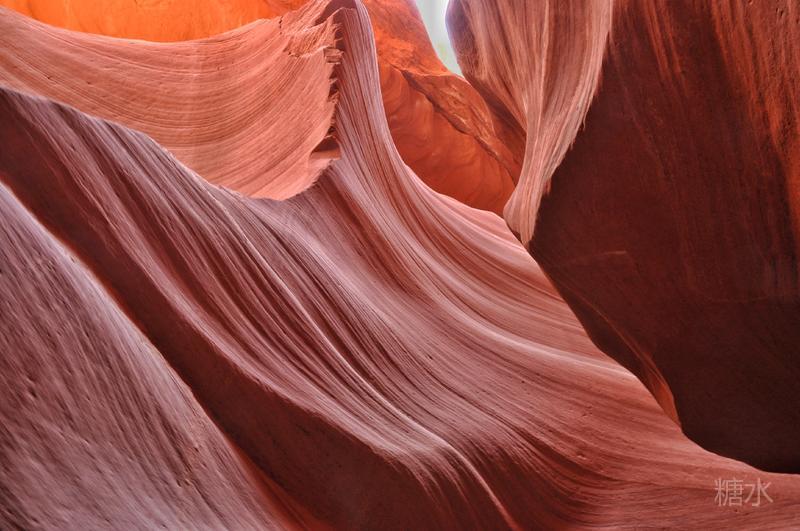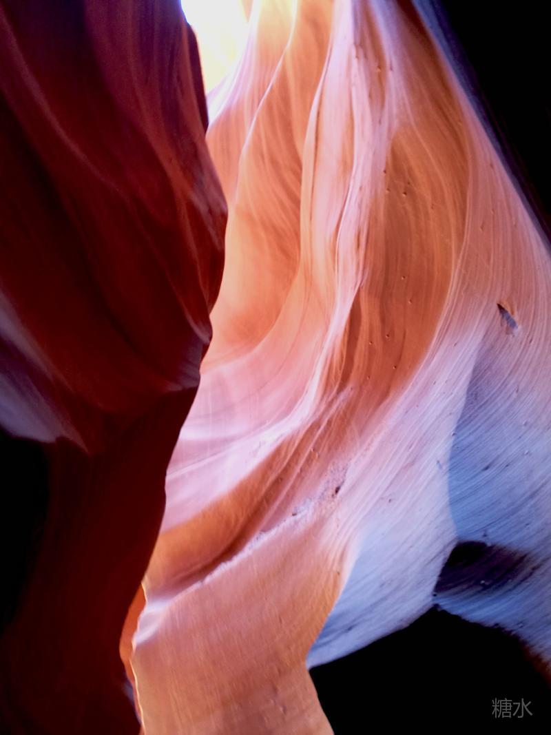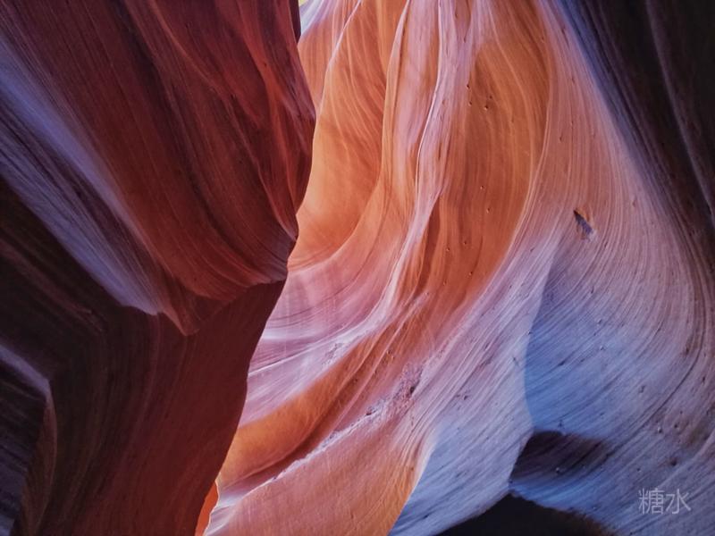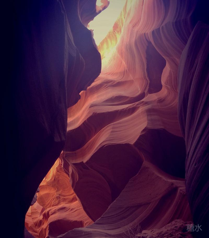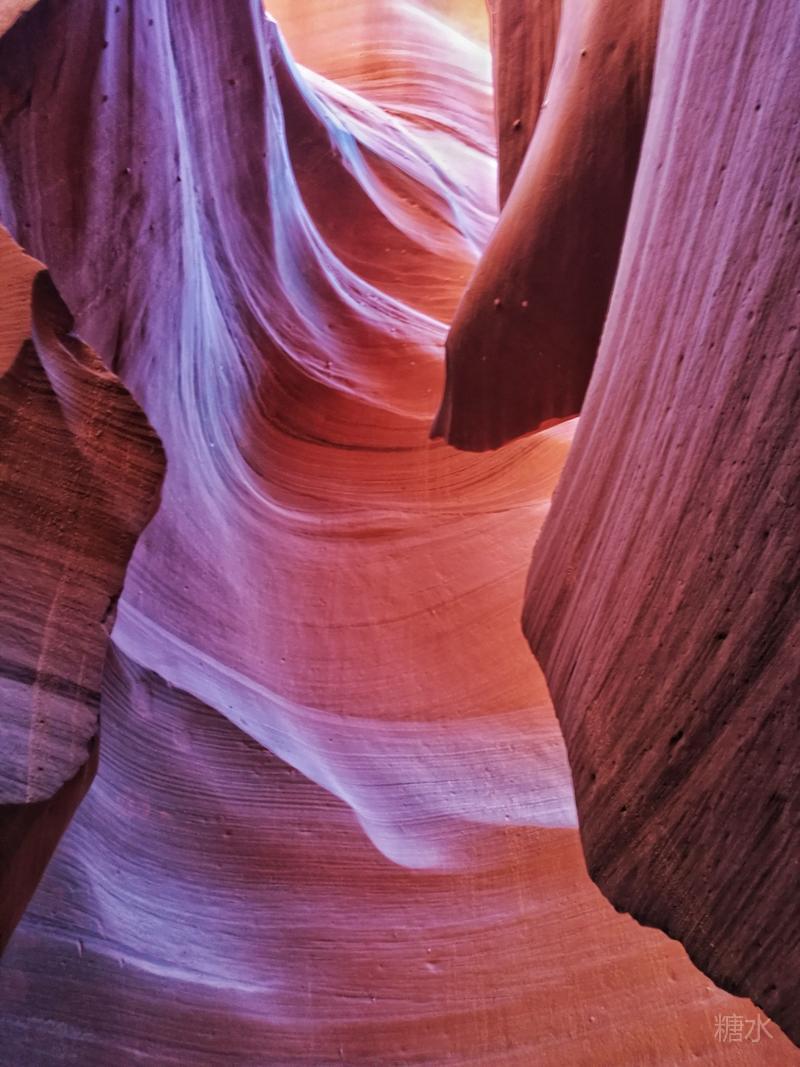 光线从谷顶狭缝渗透进来,通过玫红色的岩壁多次反射折射,由明到暗、由深到浅,发生色迁移而形成七彩色谱,给冰冷硬朗的石壁染上几分温柔。移步换景将看到不同的景致,的确无愧于世界十大摄影圣地的名号。