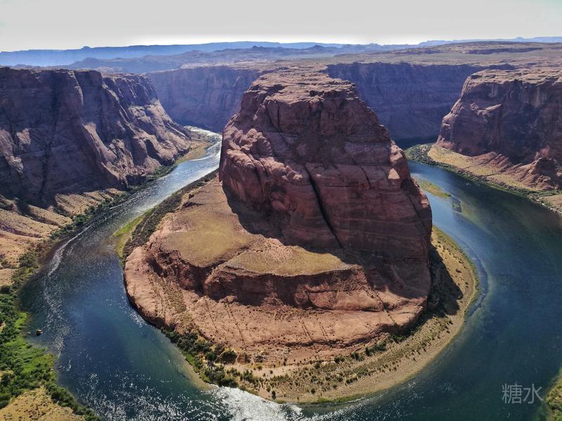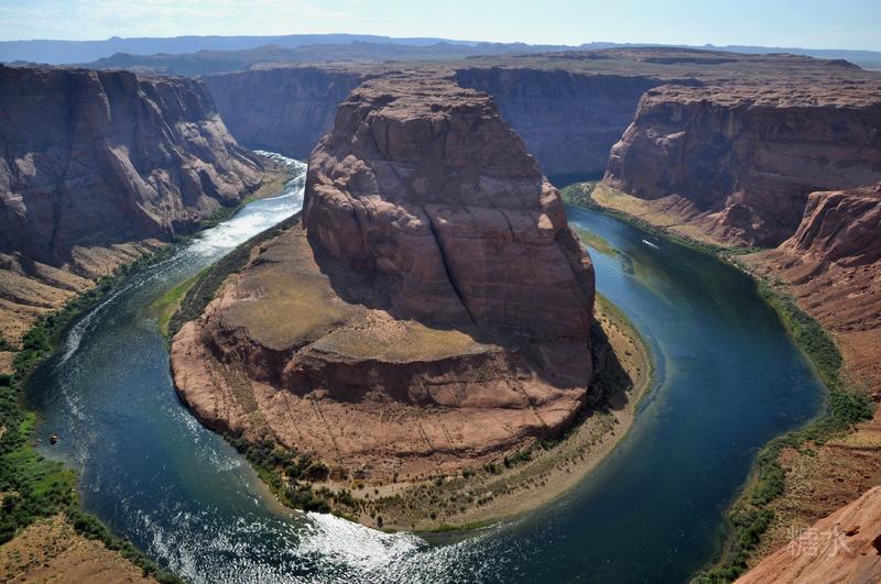 “科罗拉多”在西班牙语中意为“红河”,但是在马蹄湾这段,因为藻类植物大量繁衍河水却是蓝绿色的。在令人觉得燥热的红岩包围下,这段幽绿的河水让人感觉格外清凉。