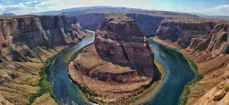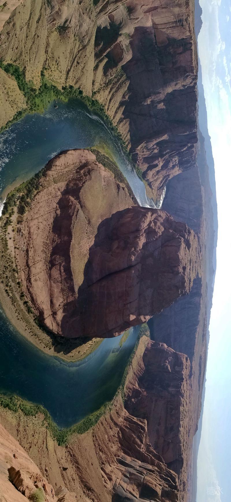 马蹄湾是惊魂夺魄的,却又是让人屏息静气的。绿色的科罗拉多河围绕着红色的马蹄状岩石,蜿蜒流淌出270度的转角,平静而威严。站在悬崖边俯瞰300米下的科罗拉多河,心里充满了对大自然的敬畏......