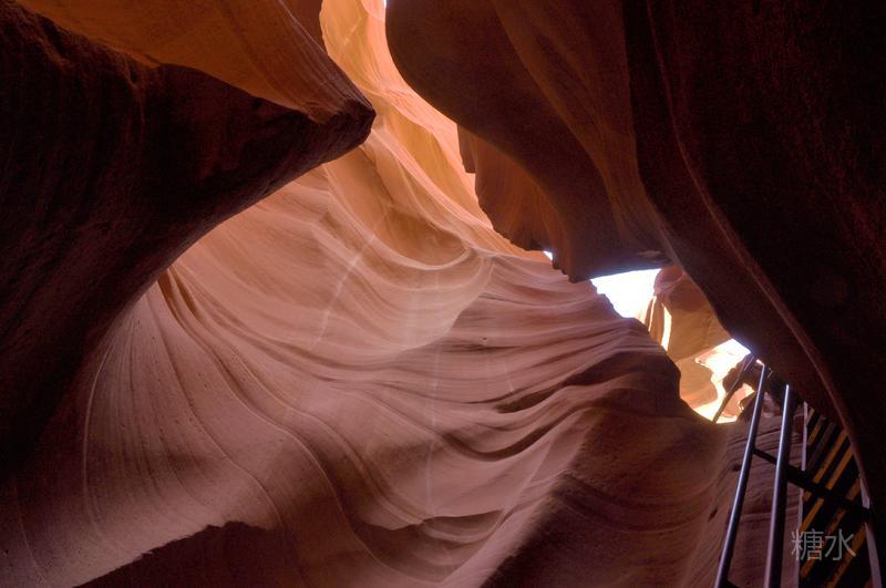 下羚羊峡谷是世界上著名的狭缝型峡谷,需要爬楼梯深入50米深的谷底。峡谷总长300米,一般游客只被允许走到中途点。