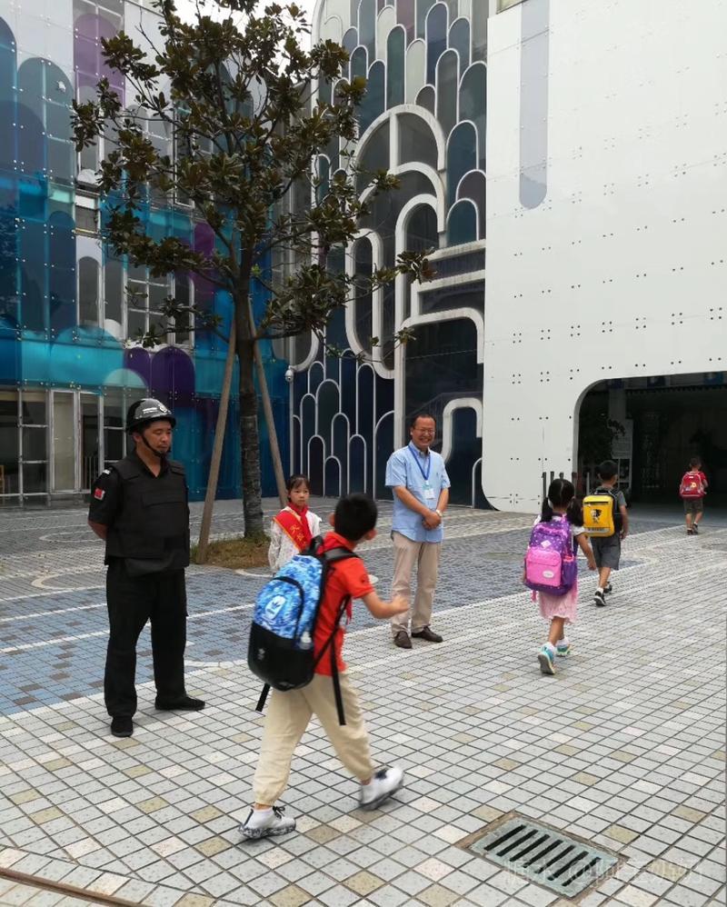 楼校长每天早上在学校门口恭候每一位小朋友