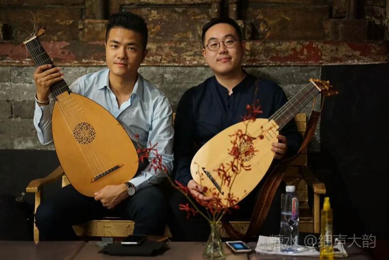 左:范晔(留学瑞士鲁特琴演奏员) 右:张洛菩(留学德国鲁特琴演奏员) 2017年9月15日,16日,先后在中央音乐学院教学楼音乐厅以及嵩祝寺大殿举办鲁特琴演奏会,把文艺复兴时期的音乐带给京城学子和爱乐人士,深受欢迎。