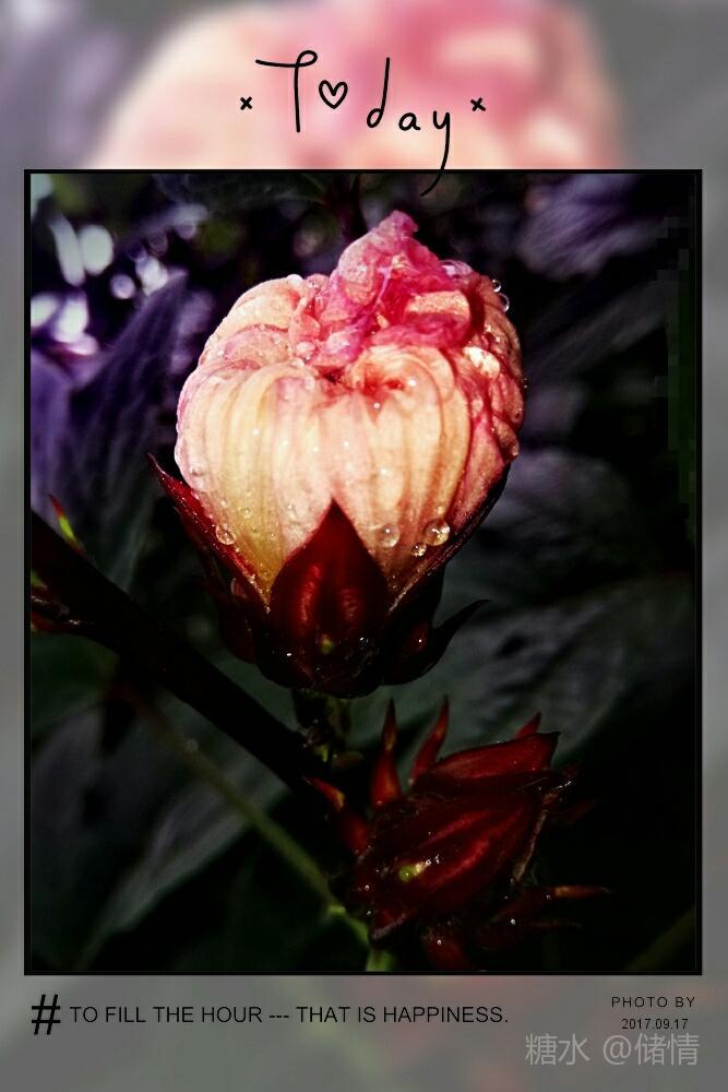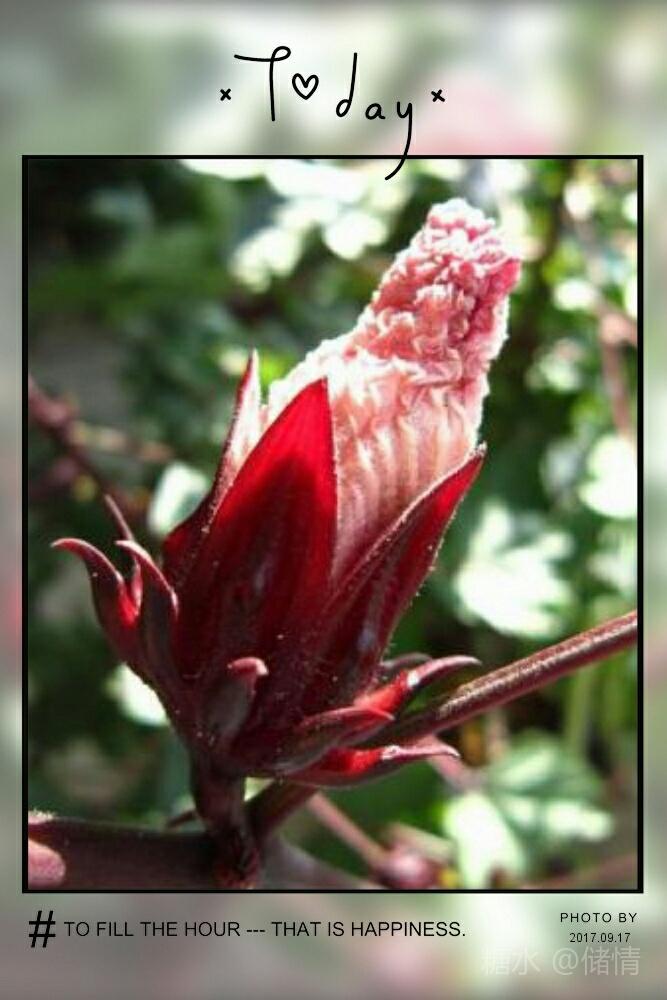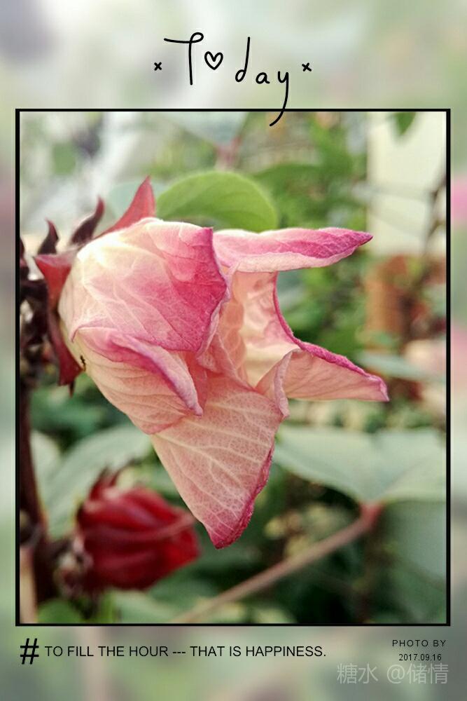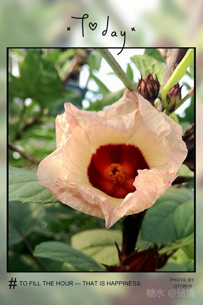 8月中旬始,洛神花开。花期短暂,清晨清风一吹花开;中午在风中凋零。