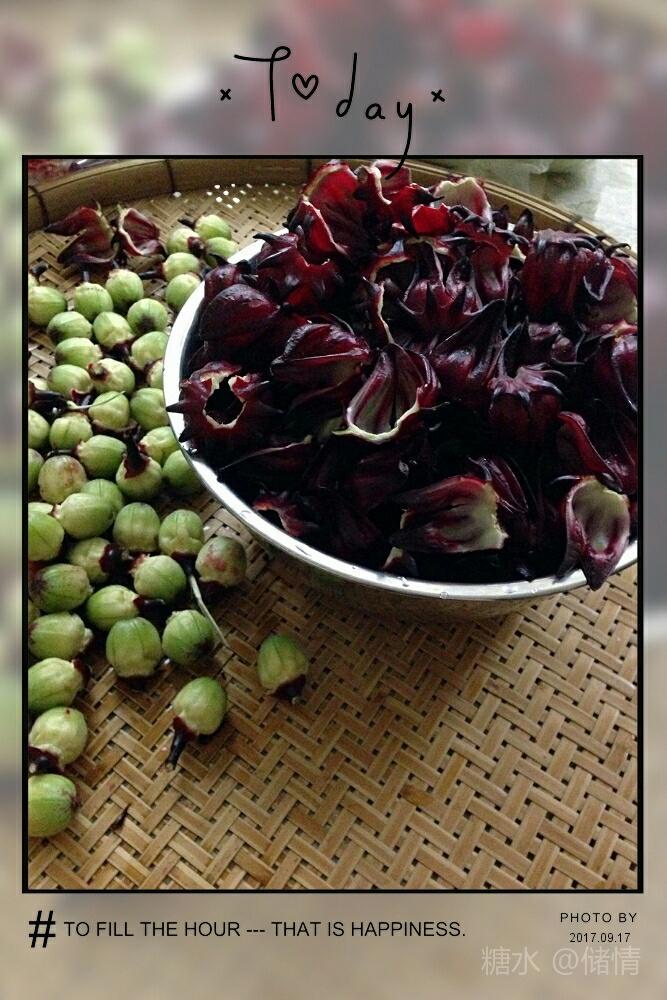 新鲜的洛神花,犹如红宝石般炫丽璀璨。即便水分流失成为干花,也红得似血似霞。这红!令人惊叹。摘取花萼连同果实,晒1天,待缩水后脱出花萼,置干净凉在竹箩上晒干。