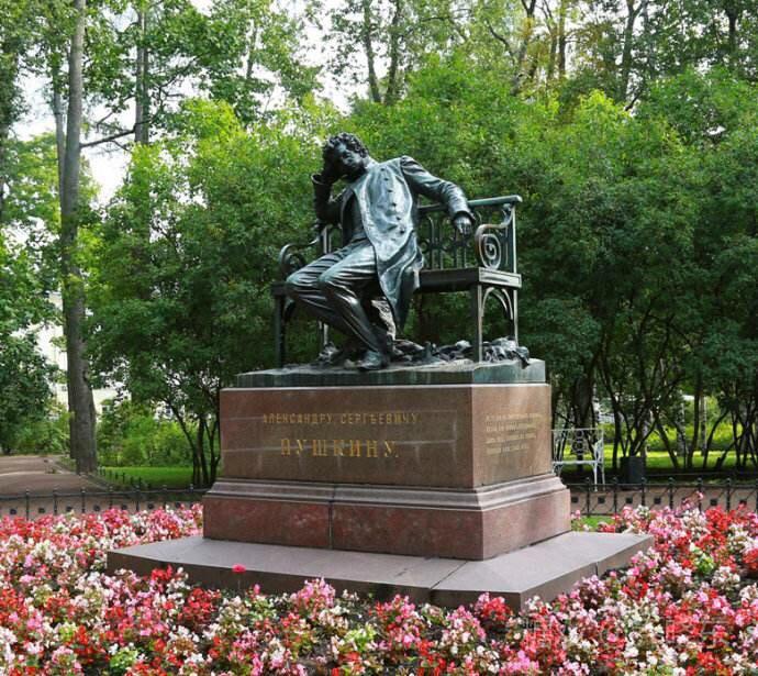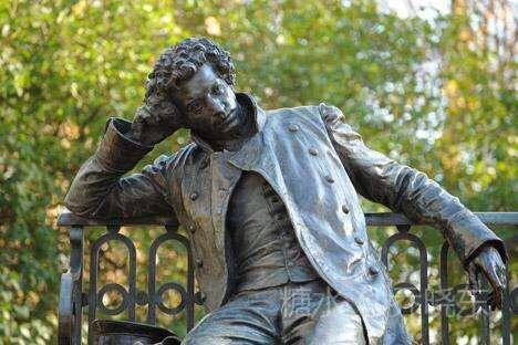 随乐曲而来的,还有浓郁的文化气息。这是铜质普希金座像,由鲜花簇拥着。