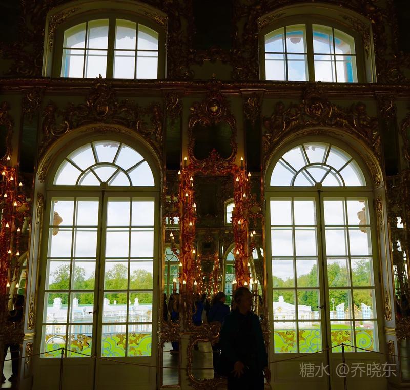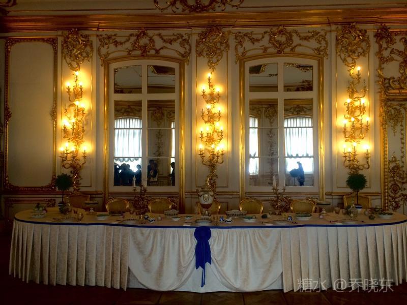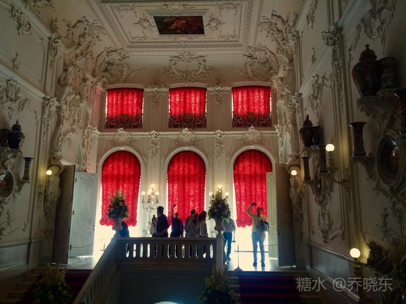 象牙白的墙壁,浮雕精美;红色丝绒窗帘,表达着女皇热烈奔放的情感特征。