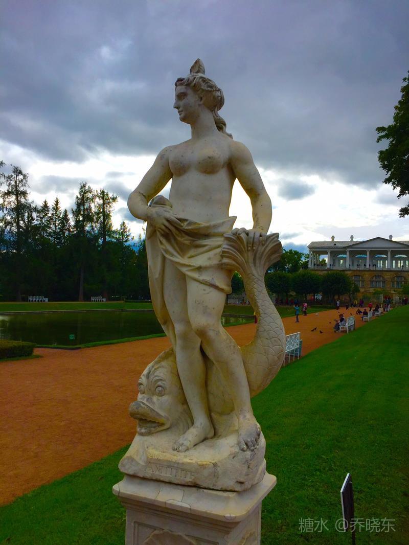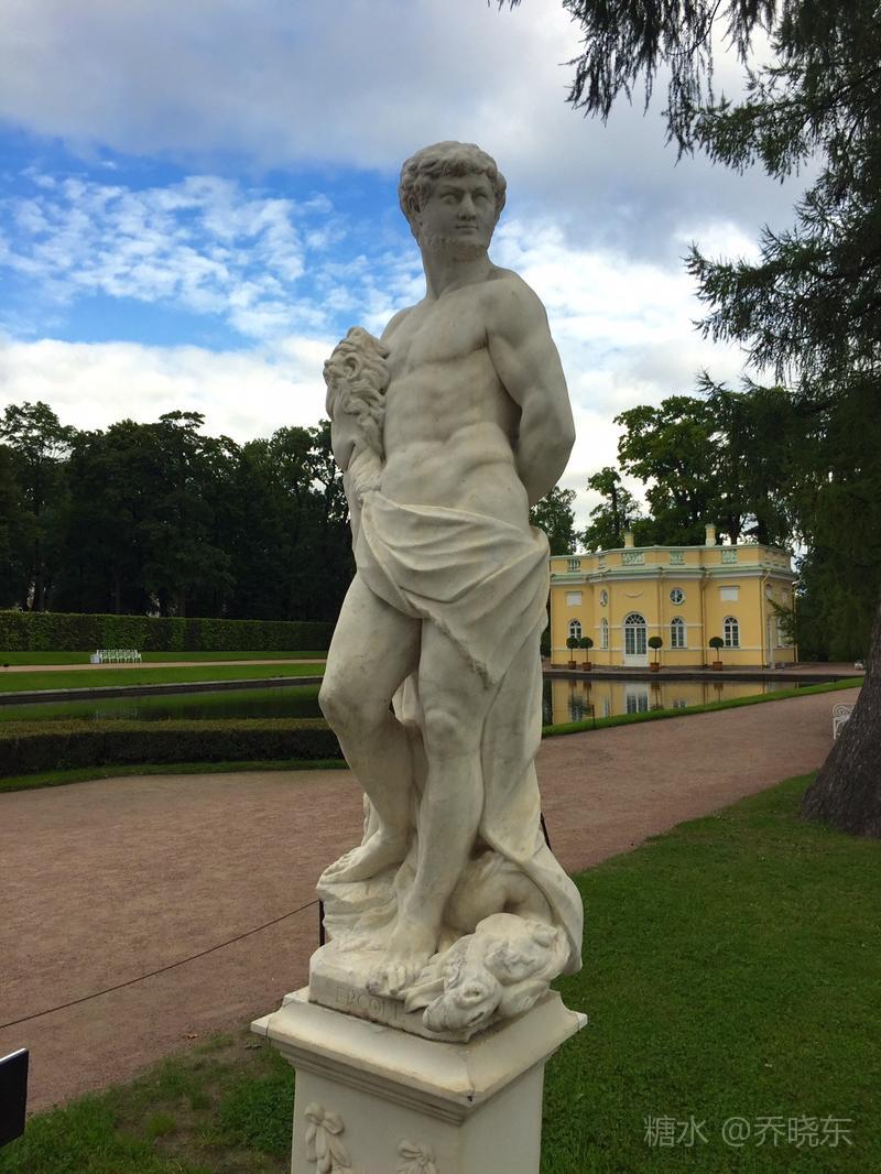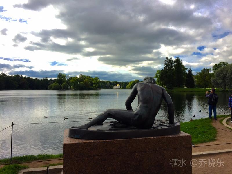 湖岸的勇士塑像,身型魁梧、肌肉强健,含胸低头,呈现在女皇面前俯首称臣的姿态。